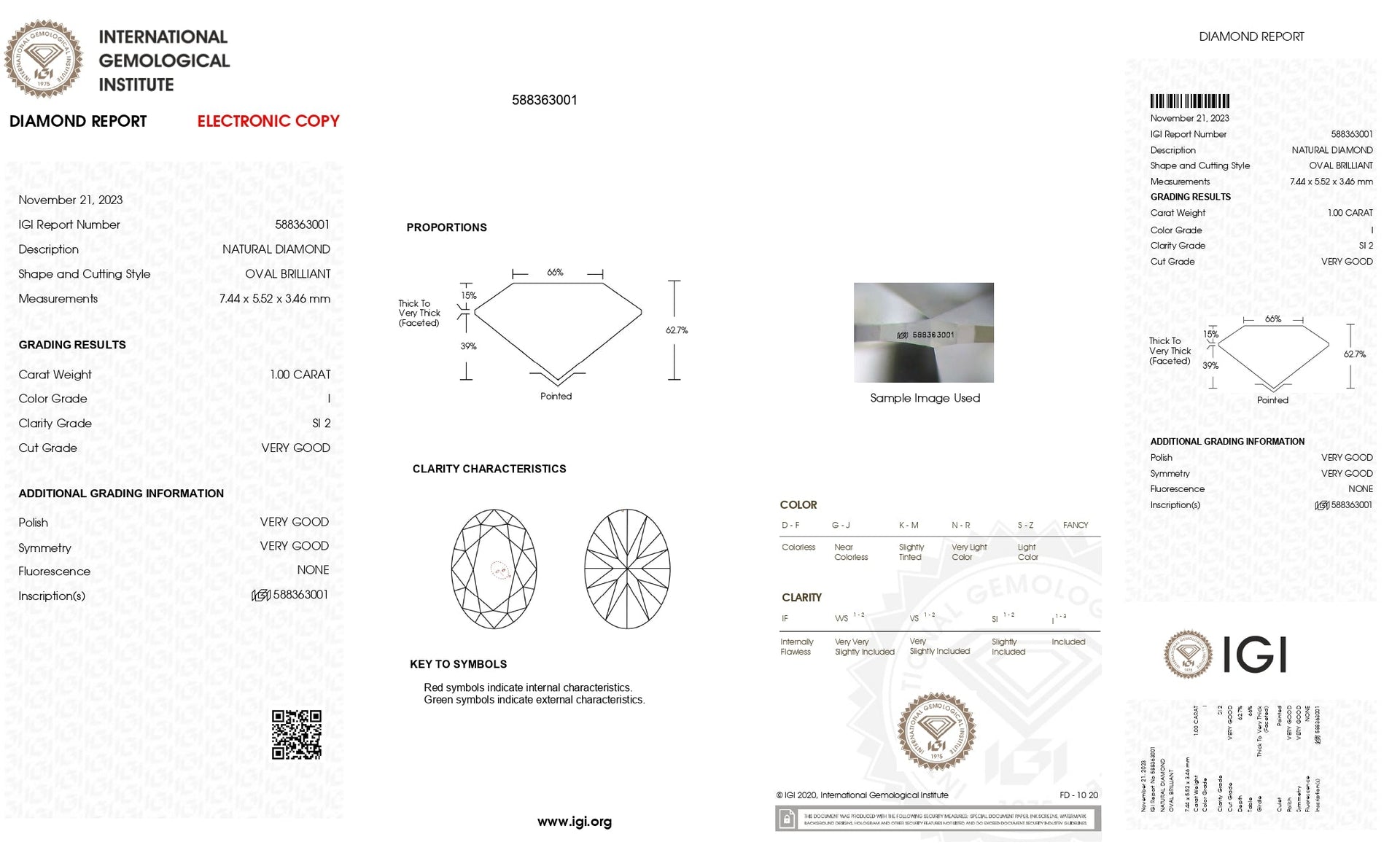1ct Oval Brilliant Cut SI2 Clarity I Color Natural Diamond
