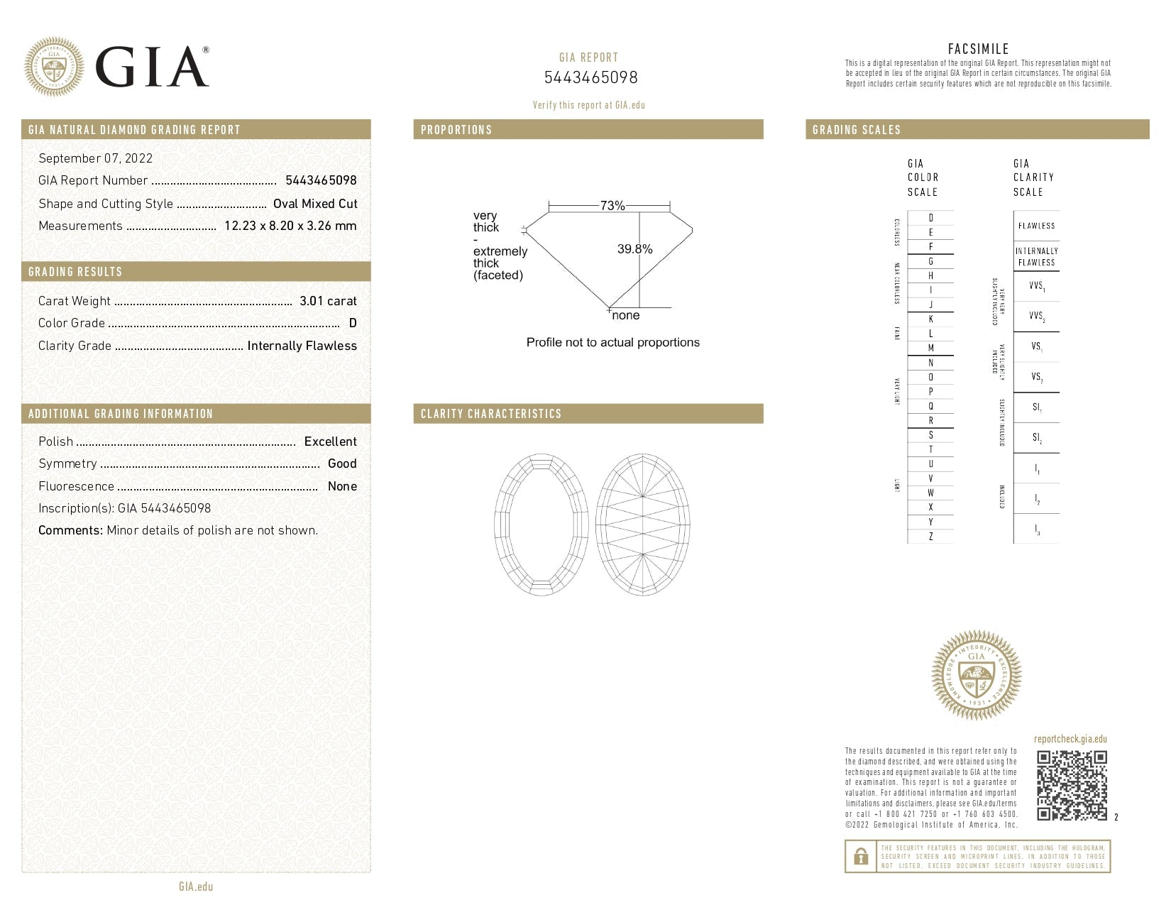 3.01ct Oval Brilliant Cut IF Clarity D Color Natural Diamond