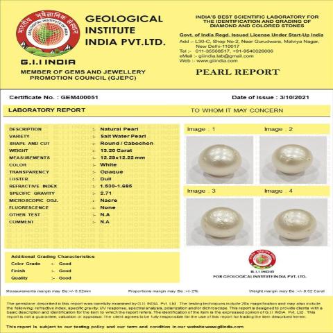 13.2 Carat 14.52 Ratti GII Certified Natural Australian Pearl Gemstone