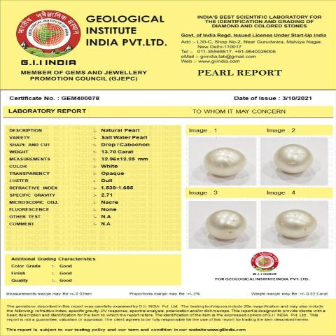 13.7 Carat 15.25 Ratti GII Certified Natural Australian Pearl Gemstone