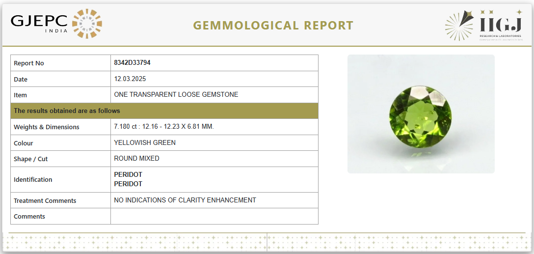 7.18 Carat 8.00 Ratti GII Certified Natural American Round Yellowish Green Peridot Stone