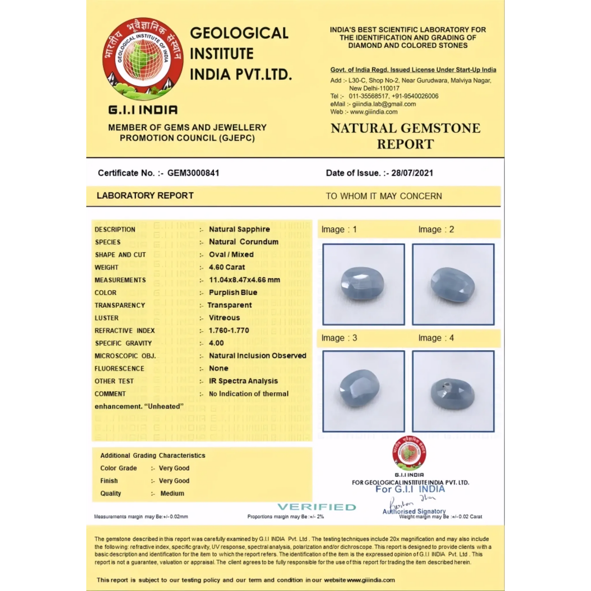 Certified Unheated Ceylon Pitambari – Natural Untreated Gemstone 4.6 Carat