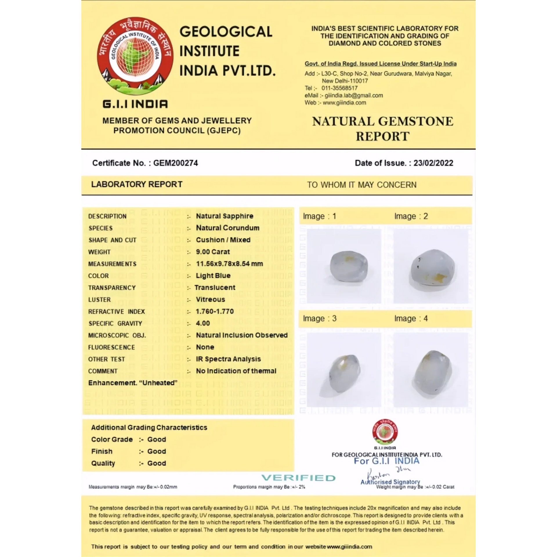 Top-Quality Ceylon Pitambari Untreated & Unheated Gem Lab Certified 9 carat