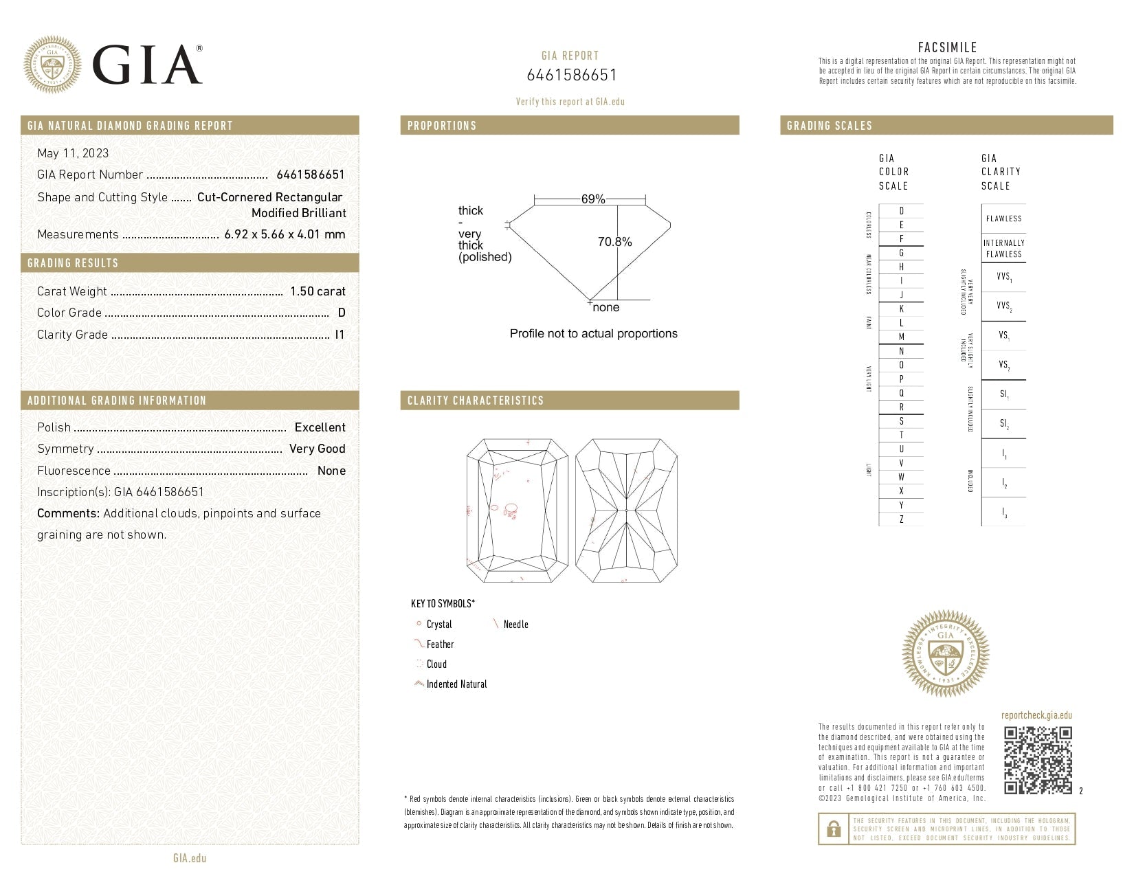 1.50ct Radiant Brilliant Cut I1 Clarity D Color Natural Diamond