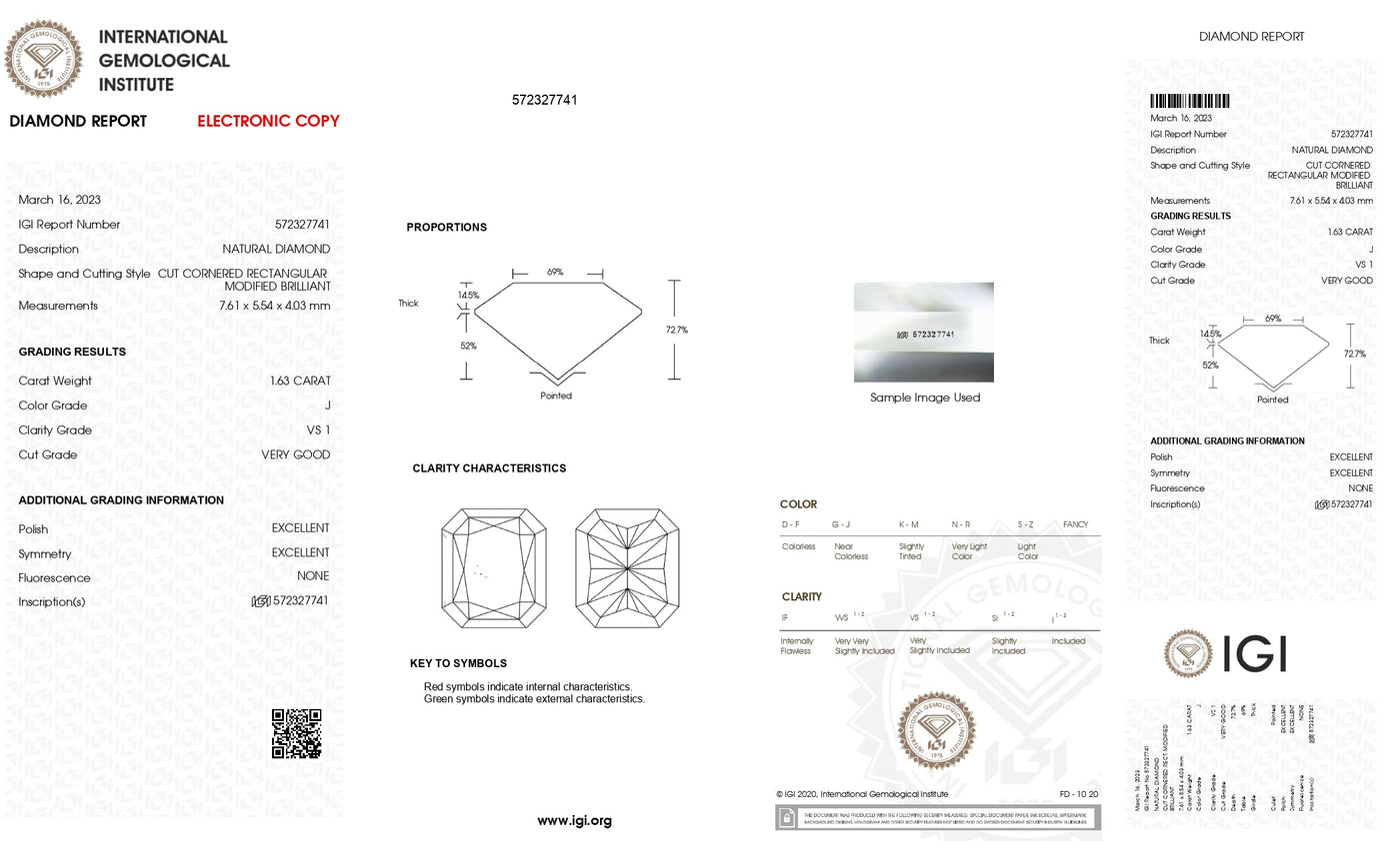 Buy 1.63 Carat Radiant Brilliant Cut VS1 Clarity J Color Natural Diamond for ₹600,298.53 at SolitaireMart! (572327741) Introduce elegance to...