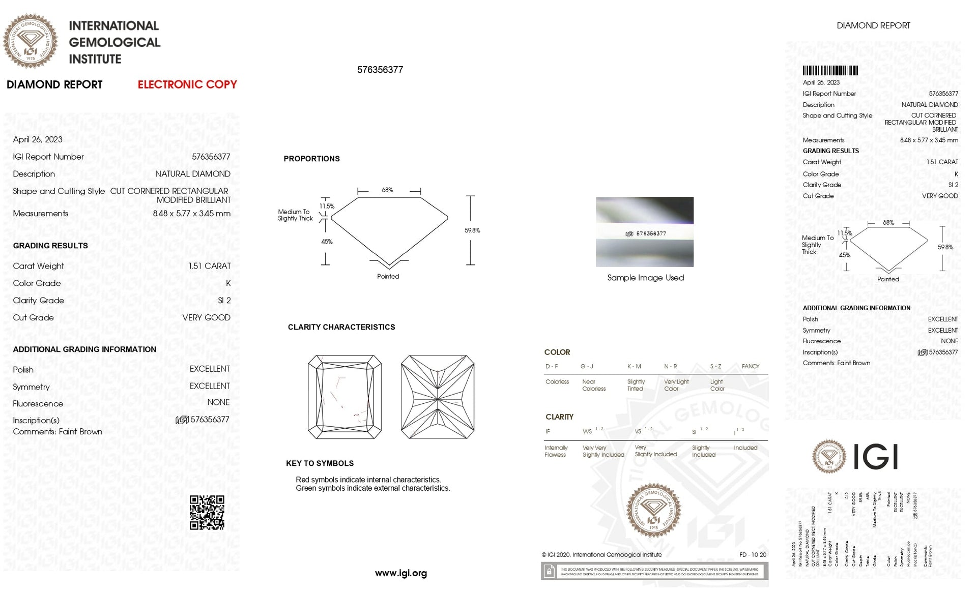 1.63ct Radiant Brilliant Cut VS1 Clarity J Color Natural Diamond