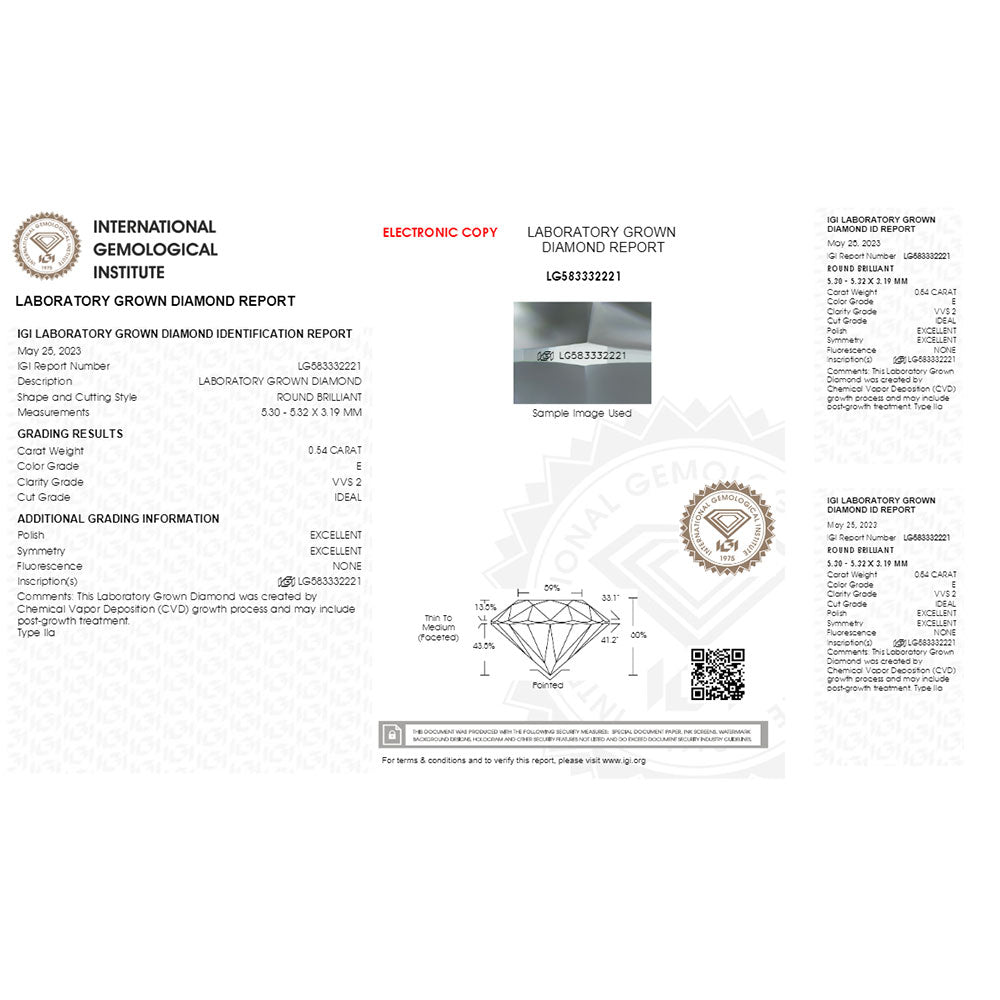 Round and Radiant 0.54ct Lab Grown Diamond of the Highest Quality