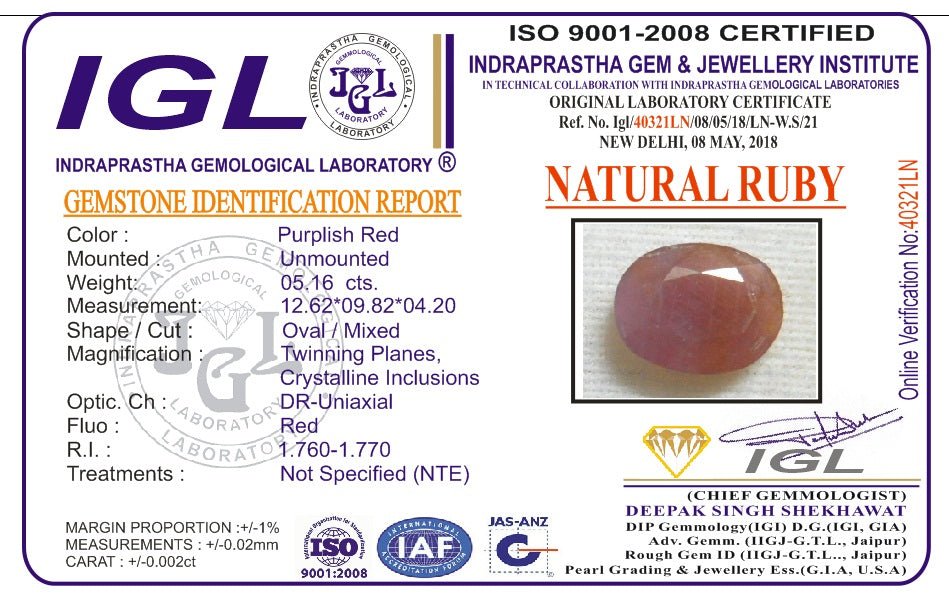 5.16 Carat 5.68 Ratti Natural IGL Certified Mozambique Oval Shape Purplish-red Ruby Gemstone