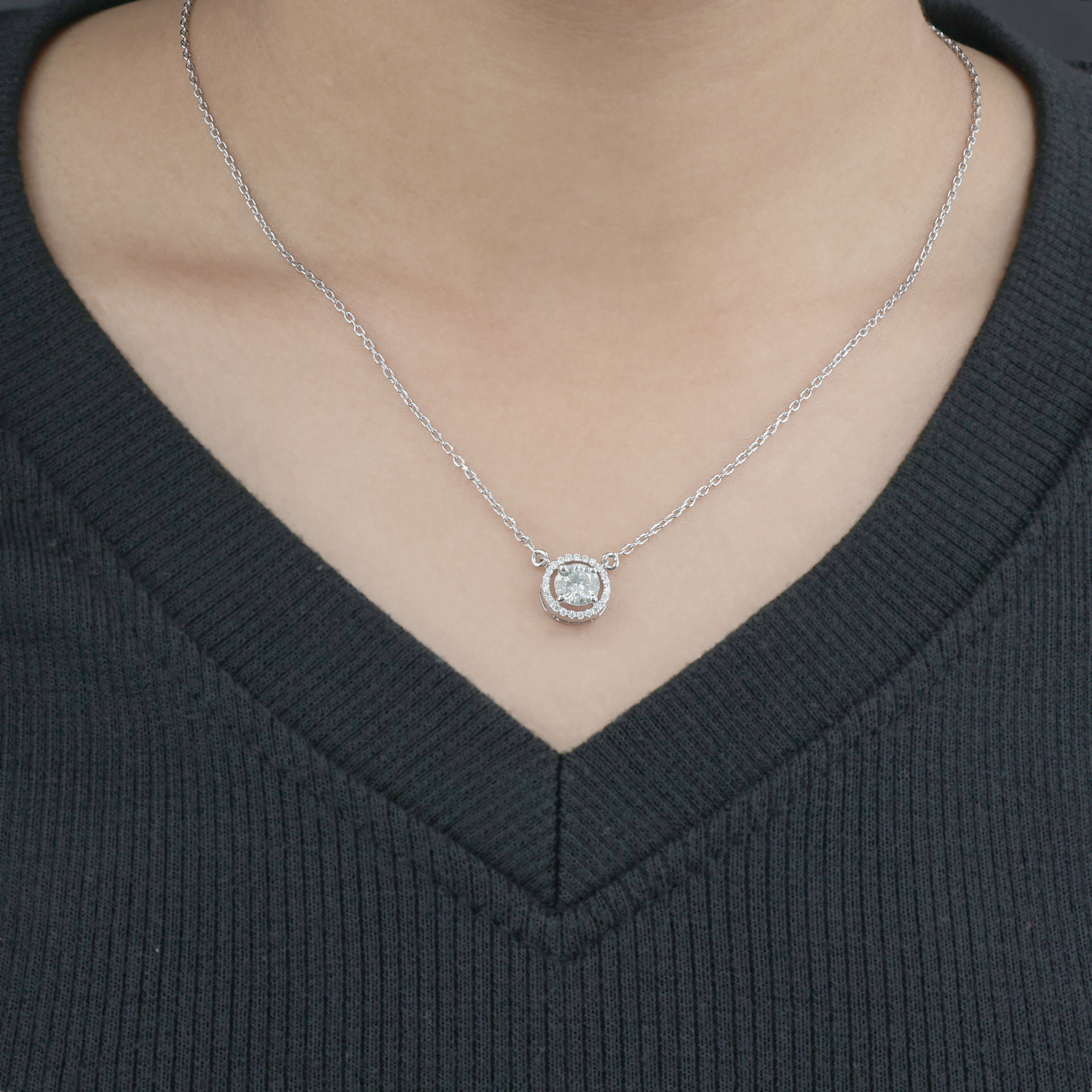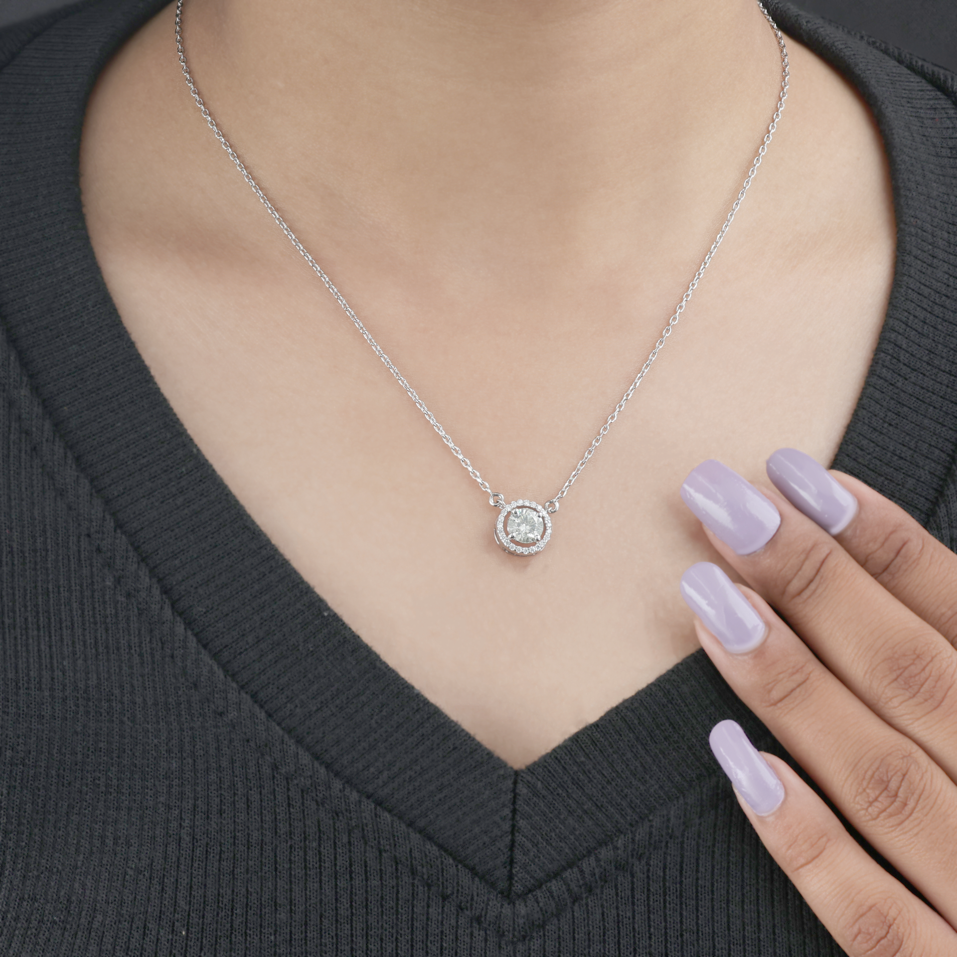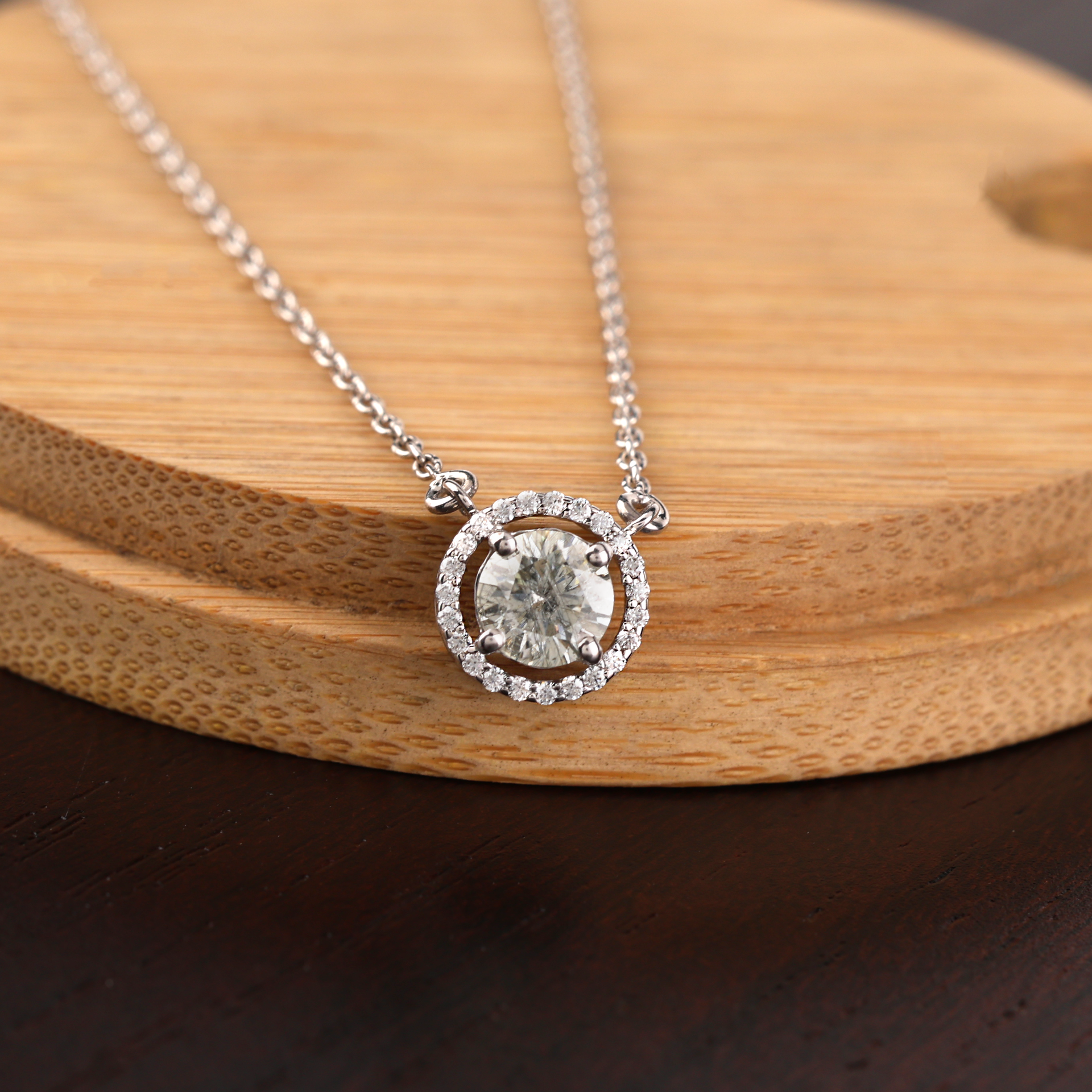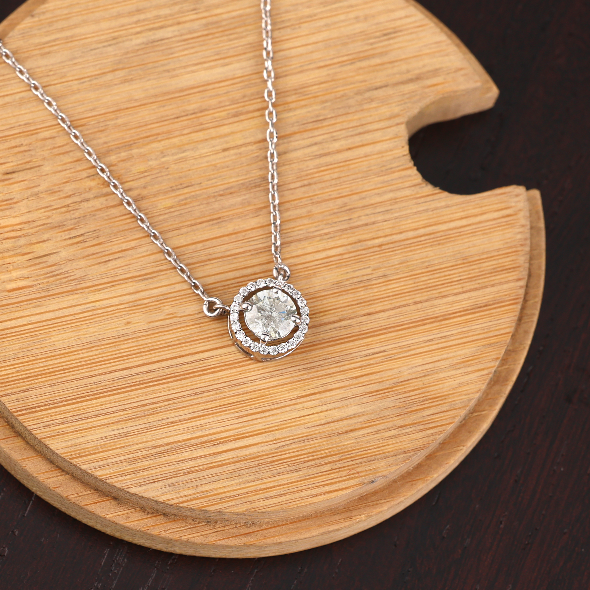 0.92 Ct Round Moissanite Pendant with Silver Chain