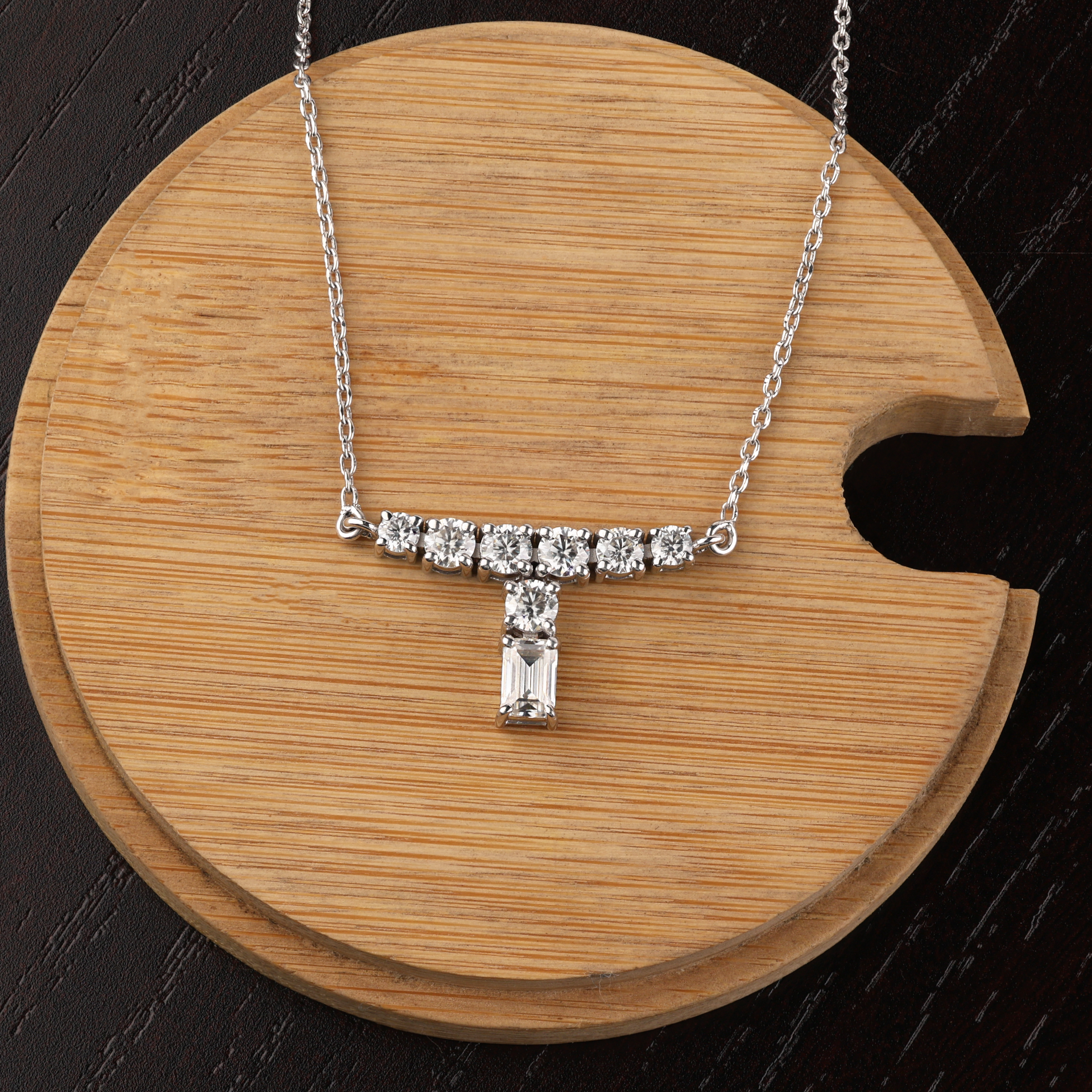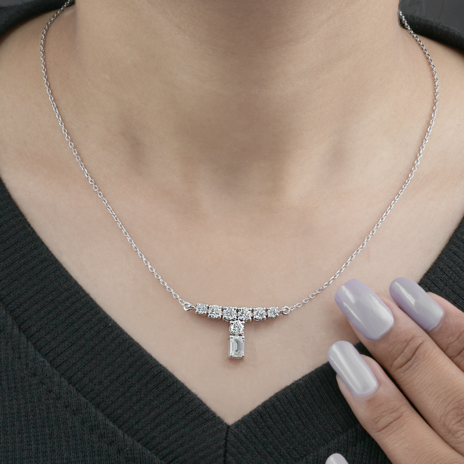 1.76 Ct Emerald Cut Moissanite Pendant with Silver Chain