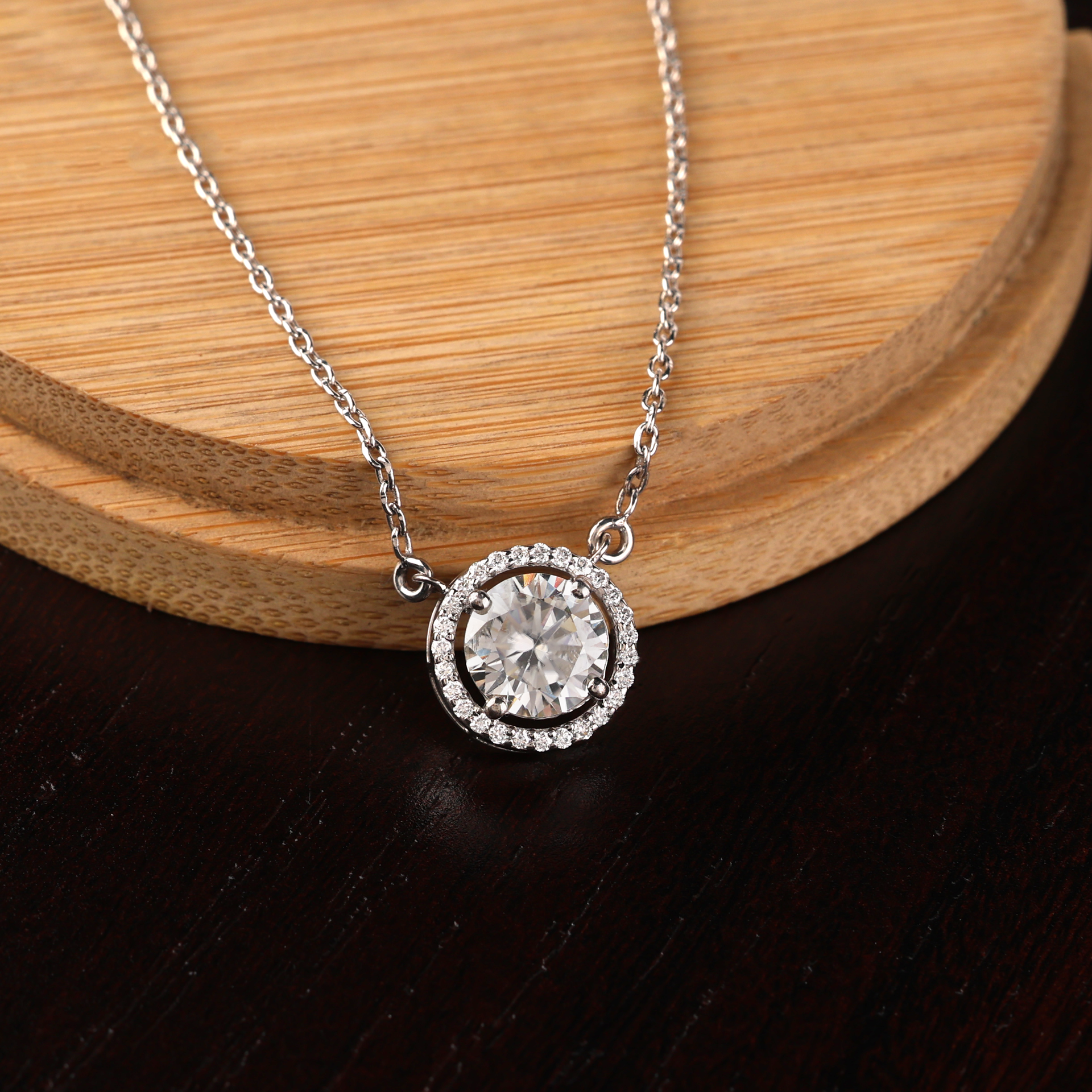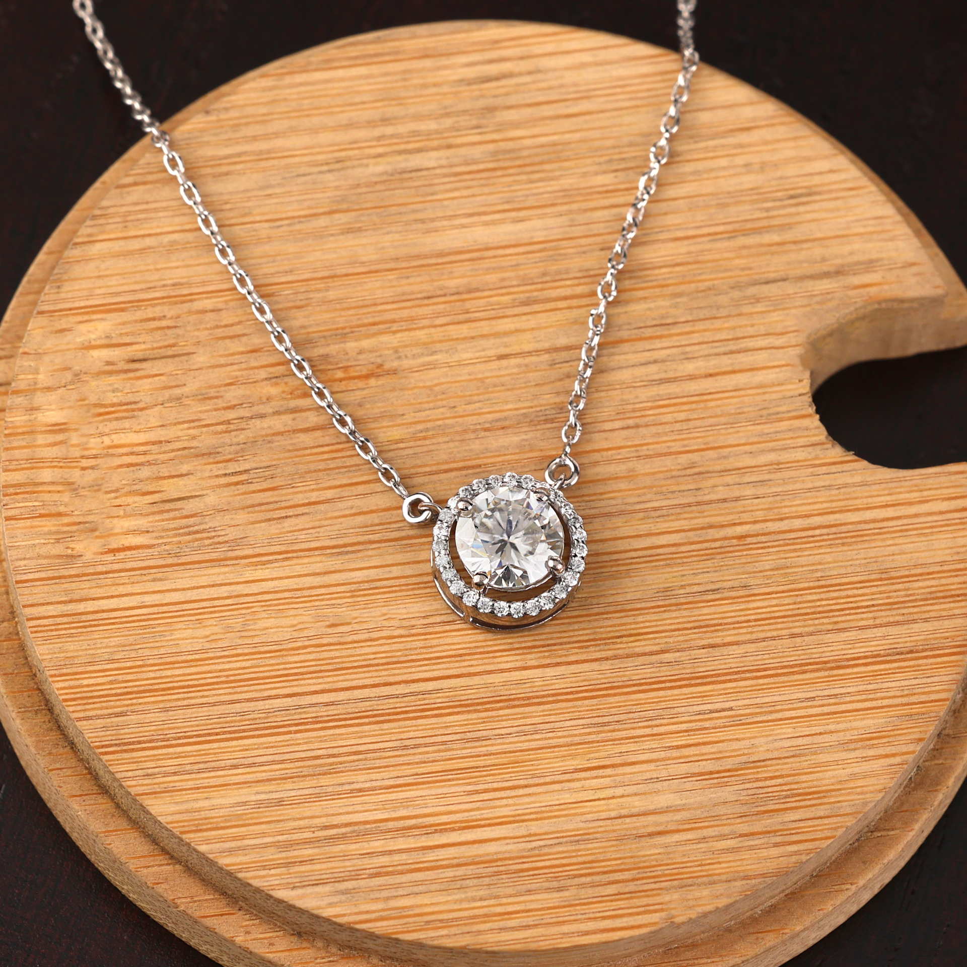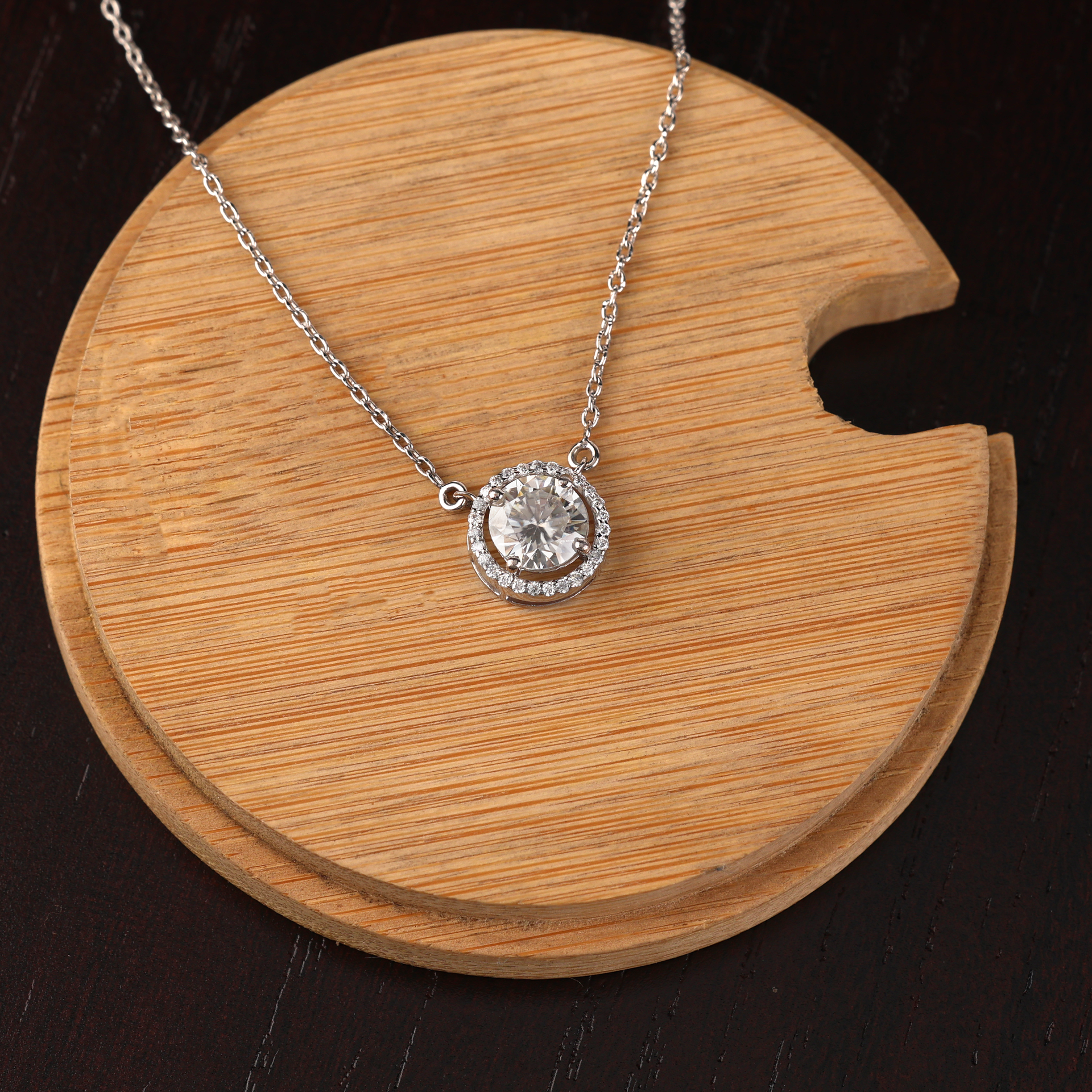 Elegant 1.71 Ct Moissanite Silver Pendant with Chain