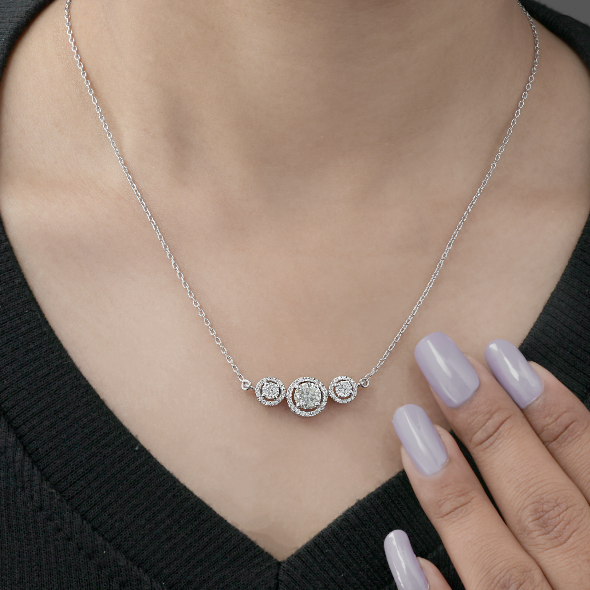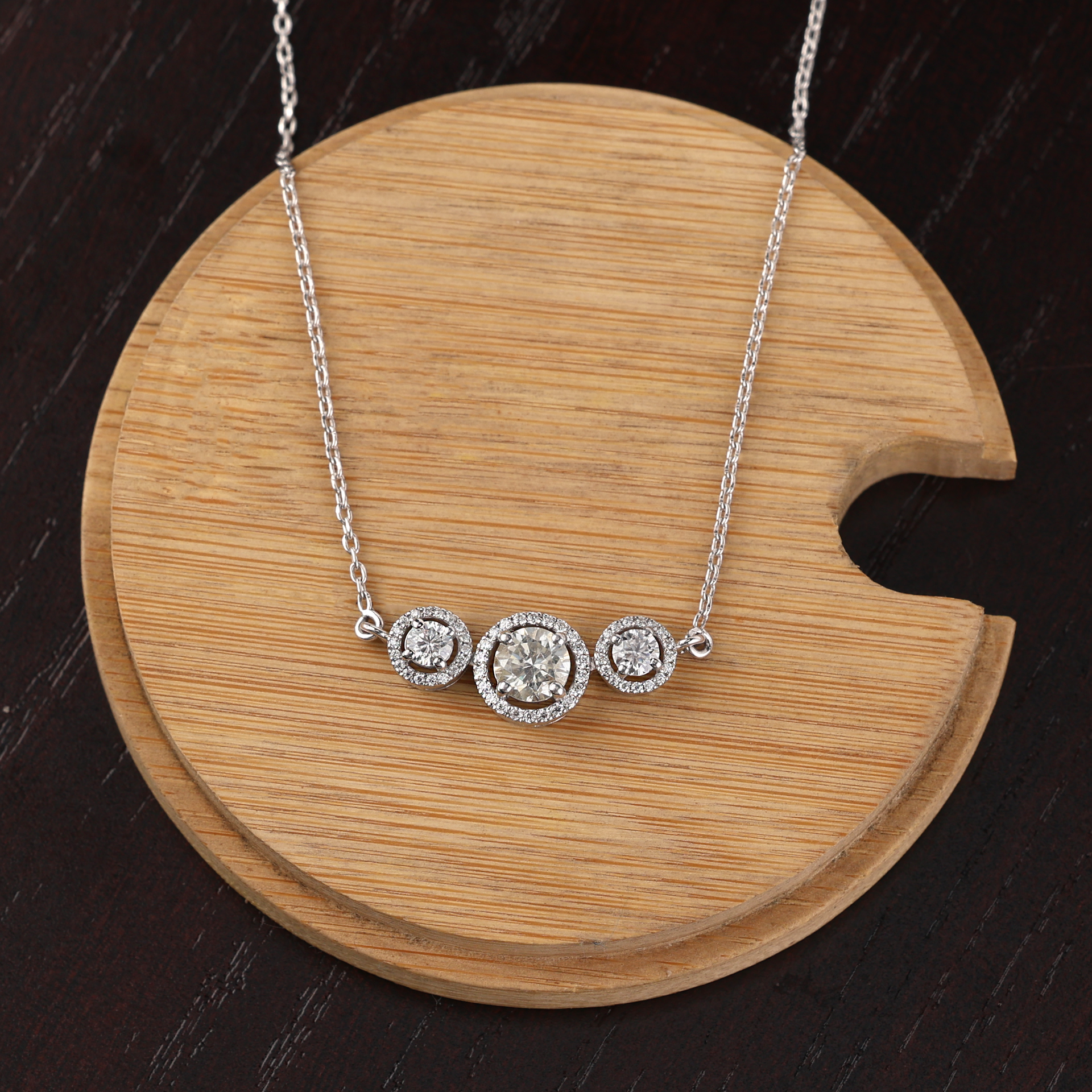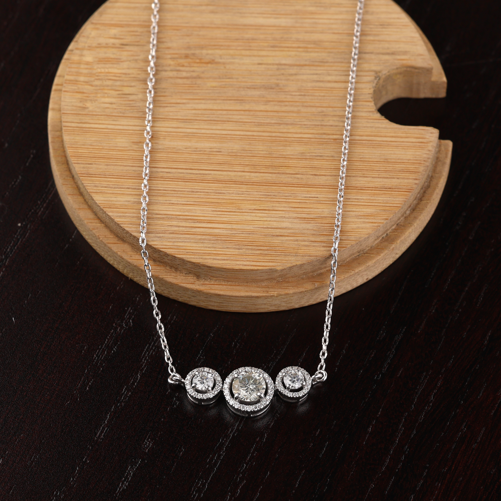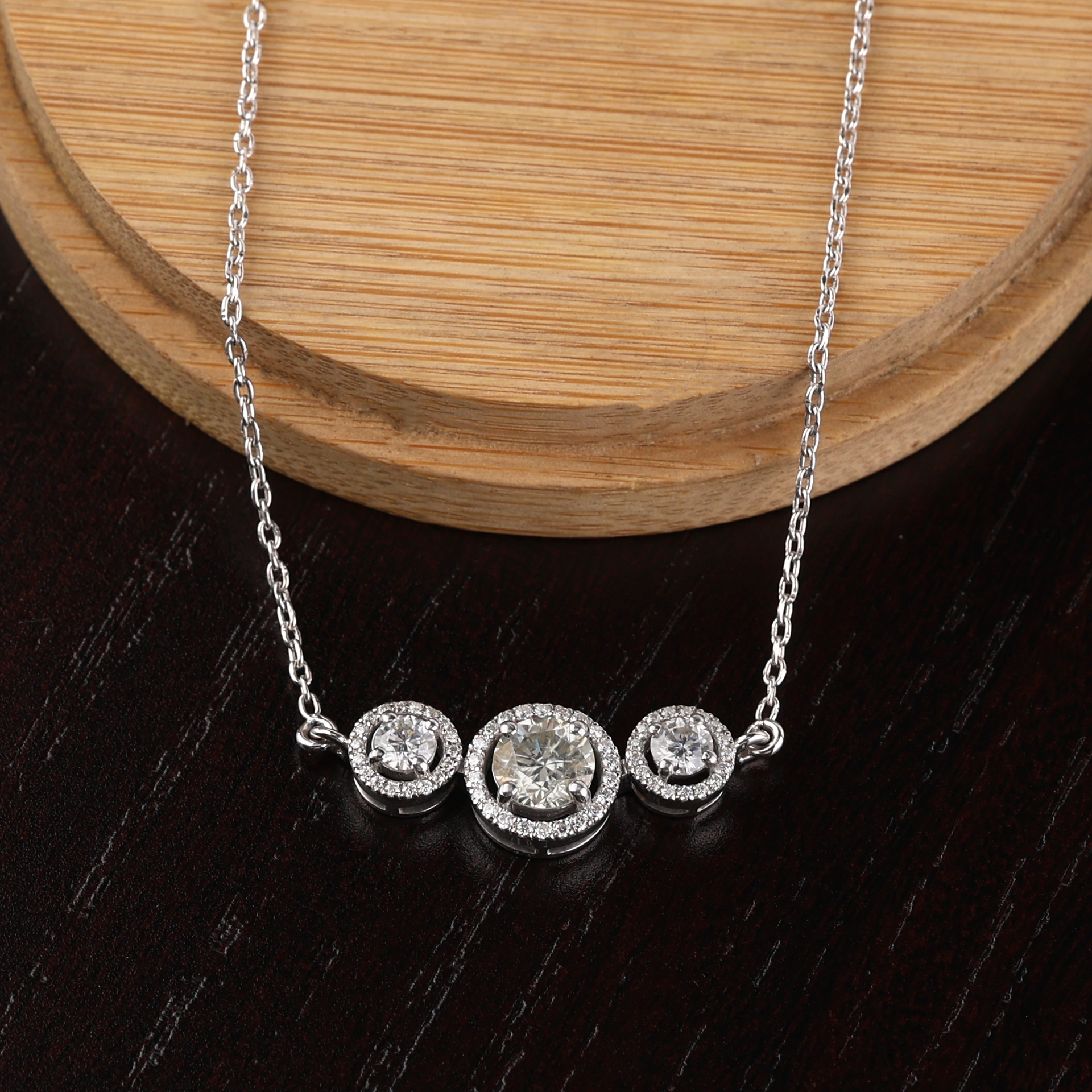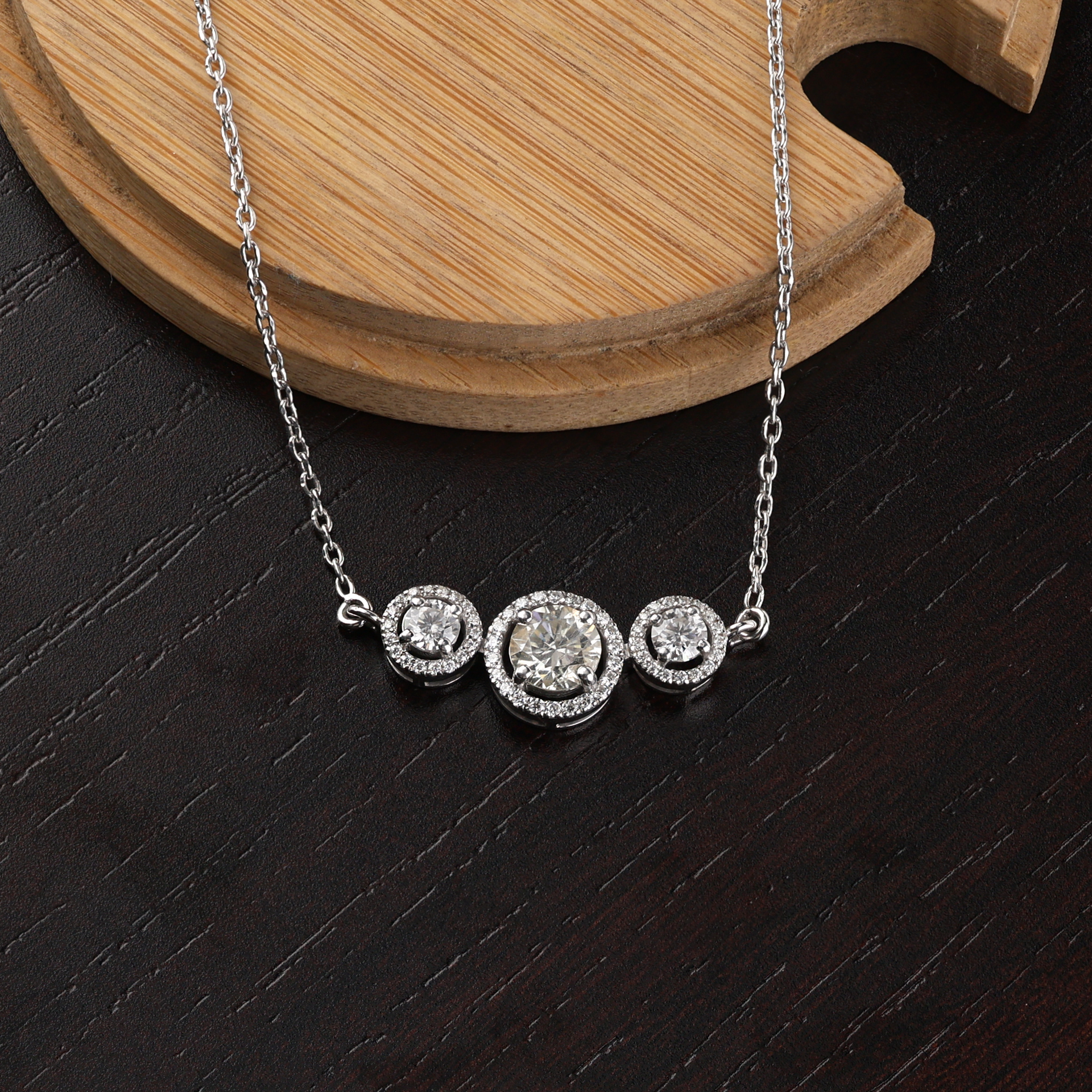 Round Moissanite Pendant 1.59 Ct with Silver Chain