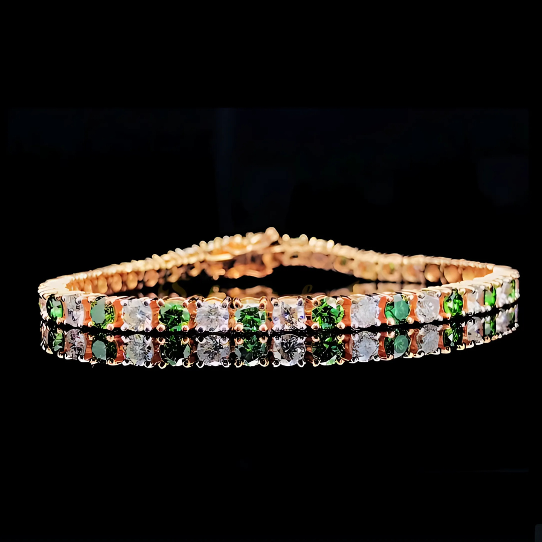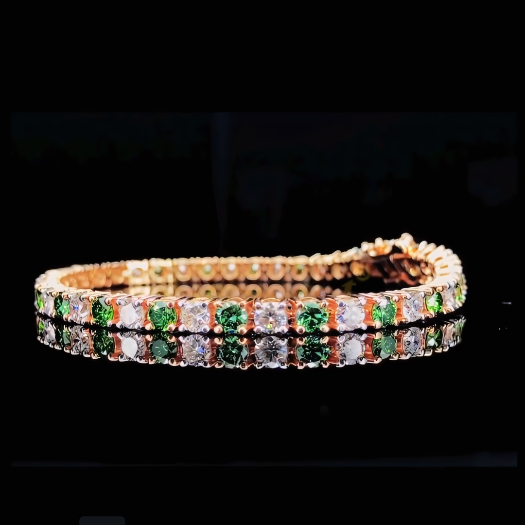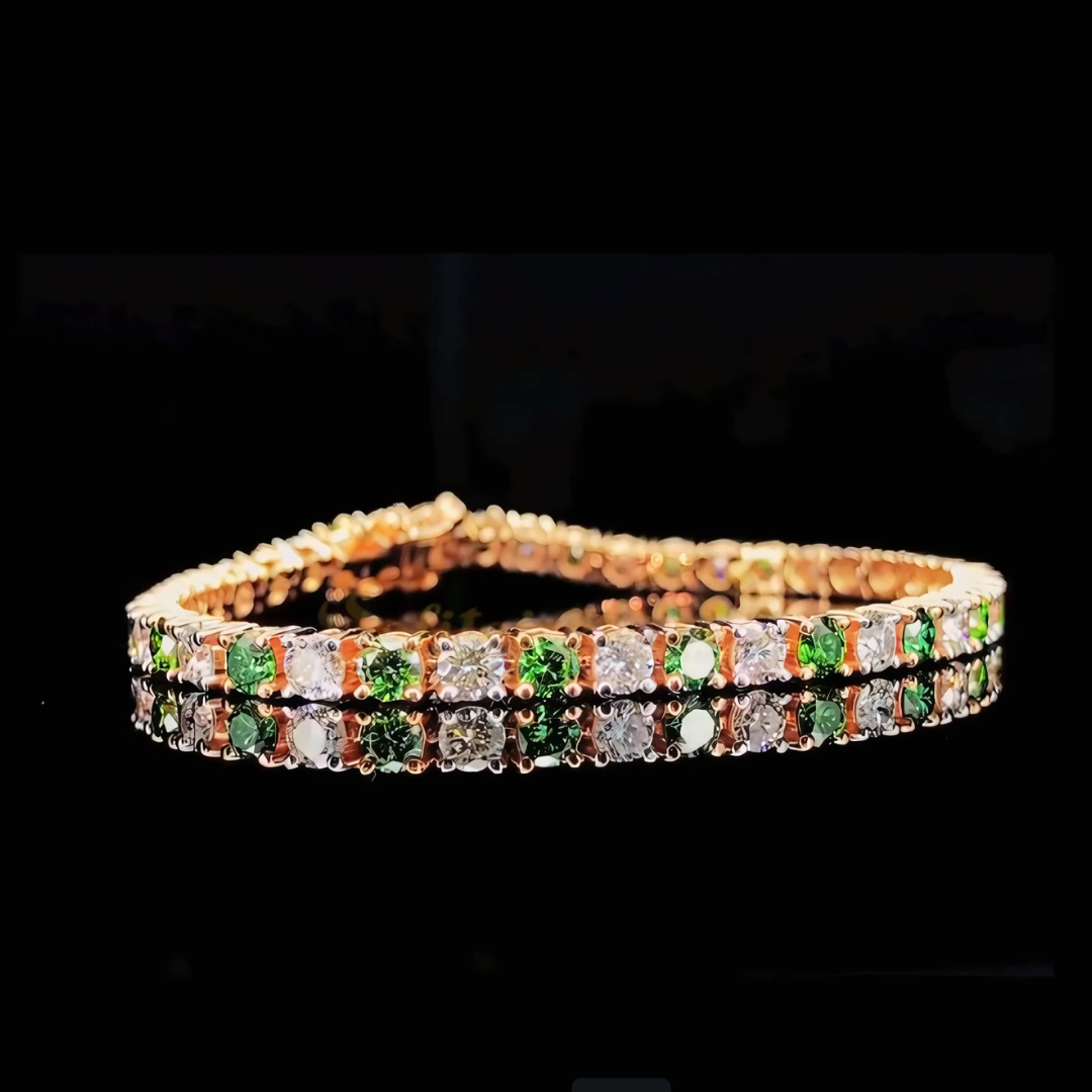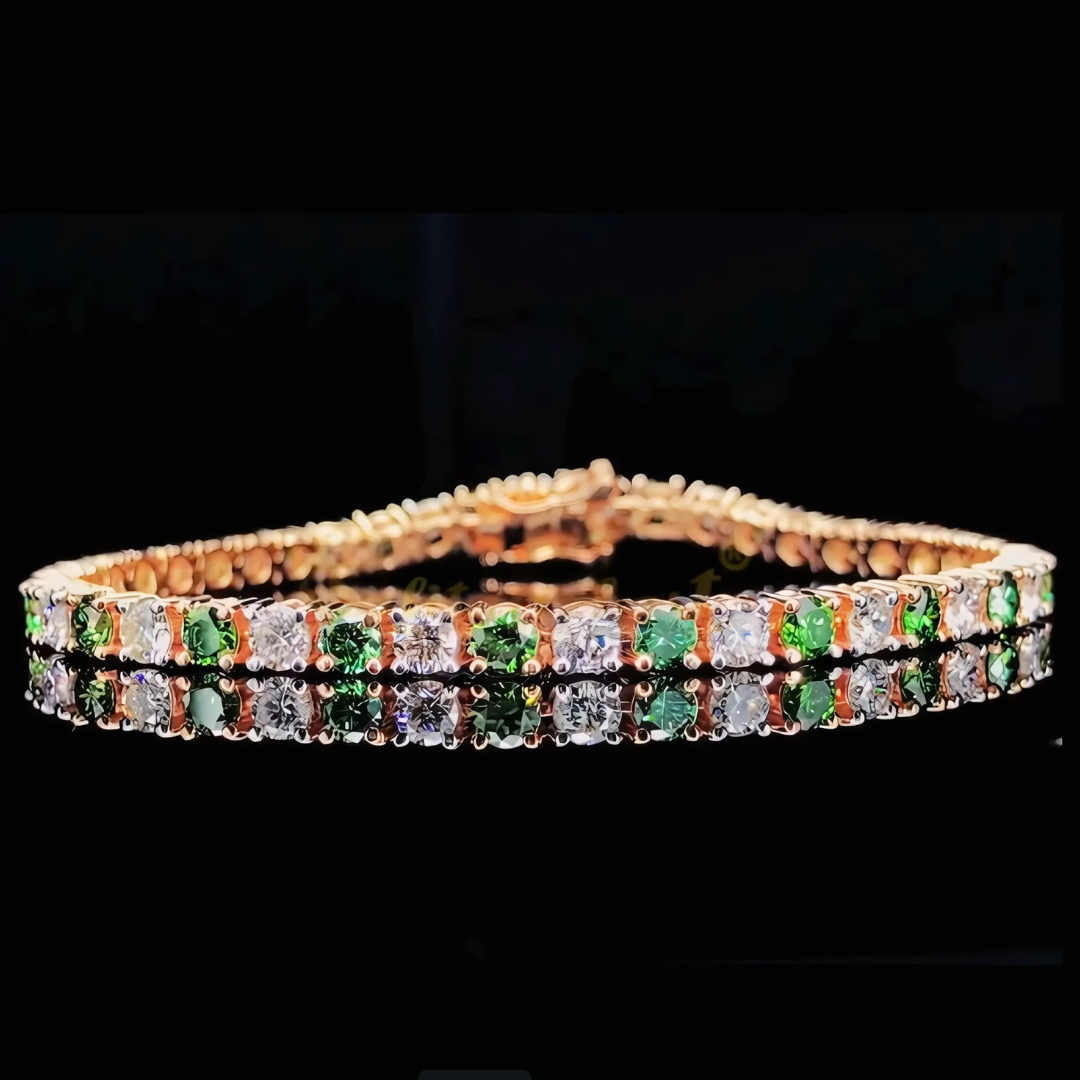 3.15 Ct Green Lab Grown Diamond & 3.20 Ct White Lab Grown Diamond Tennis Bracelet in 14K Rose Gold