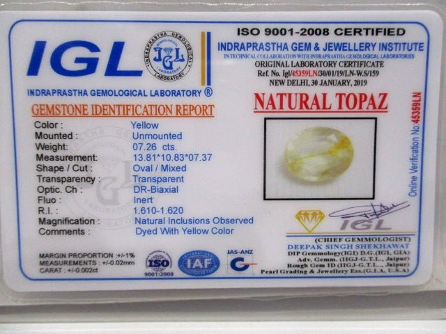 7.26 carat 8 ratti natural IGL certified Indian oval shape yellow topaz stone