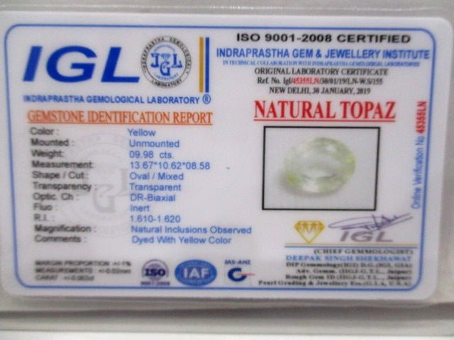 9.98 carat 11 ratti natural IGL certified Indian oval shape yellow topaz stone