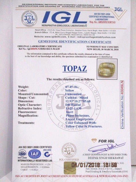 7.45 carat 8.25 ratti natural IGL certified Indian Cushion shape yellow topaz stone