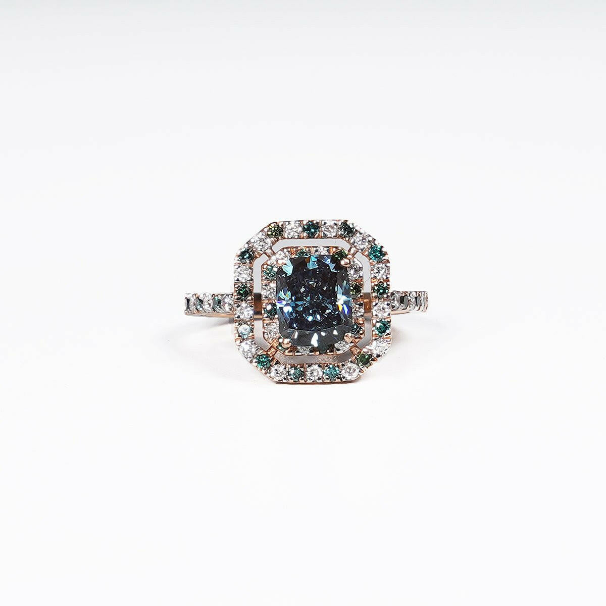 2.02ct Square Radiant Shape Vivid Blue Lab Grown Diamond Ring in 14K Rose Gold