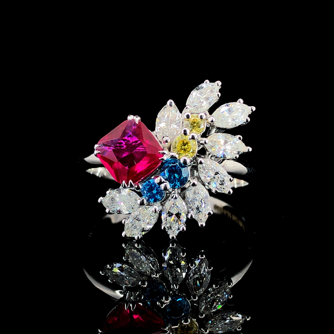 2.04ct Lab-Grown Diamond & Stone Multiple Shape Ring In 18k White Gold