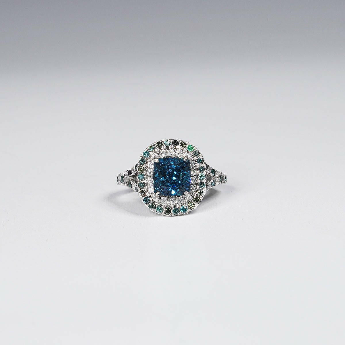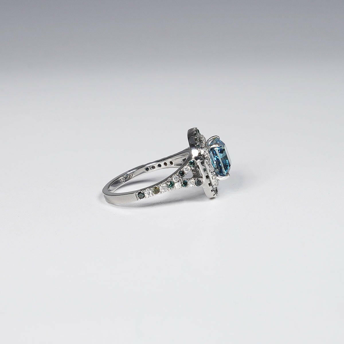 2.61ct Square Radiant Shape Vivid Blue Lab Grown Diamond Ring in 14K White Gold