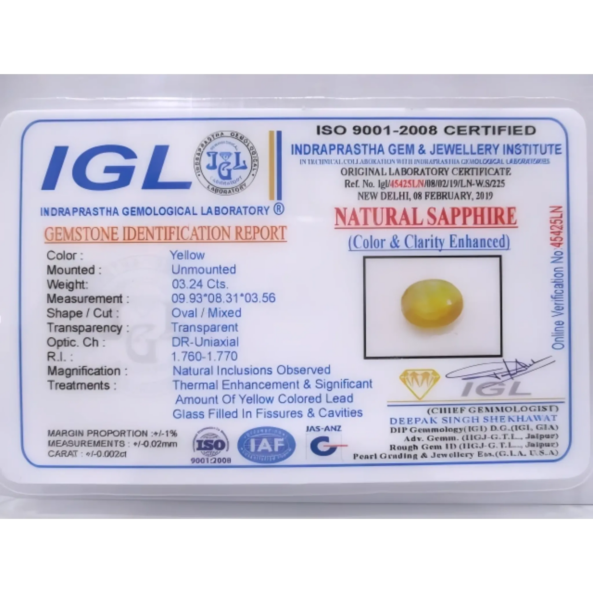 3.24ct Genuine Yellow Sapphire (Heated & treat) – Bangkok Origin – Lustrous & Elegant