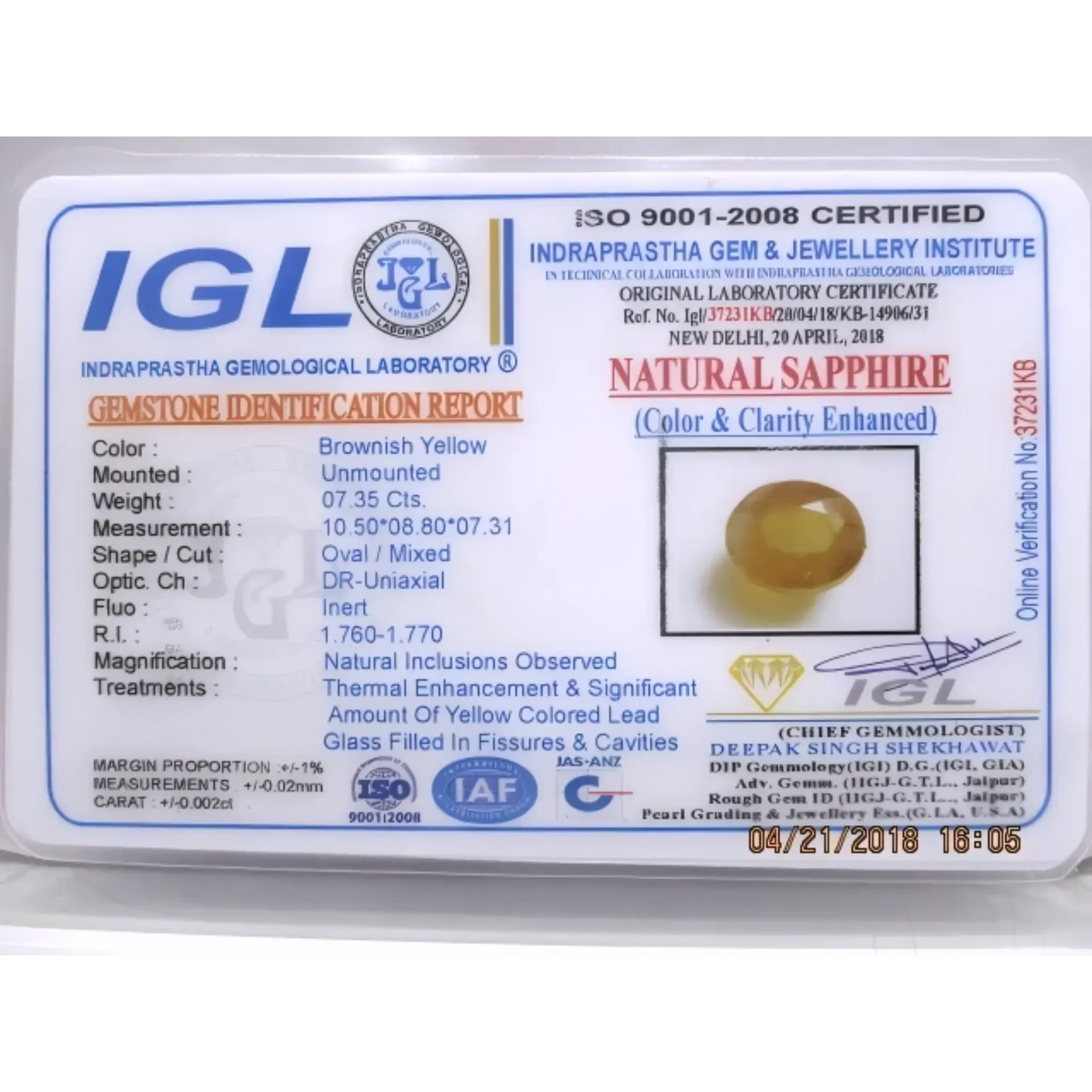 7.35ct Bangkok Natural Yellow Sapphire – Heat-Enhanced – Ideal for Jewelry