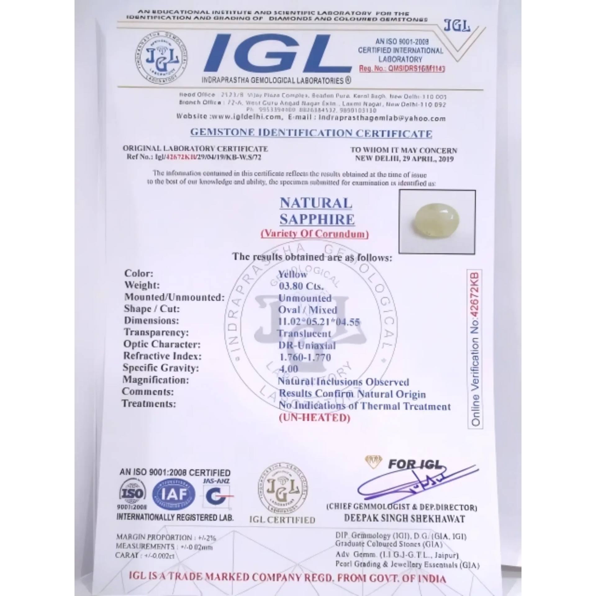 Natural Certified Pukhraj Stone – Premium Ceylon Yellow Sapphire 3.8ct