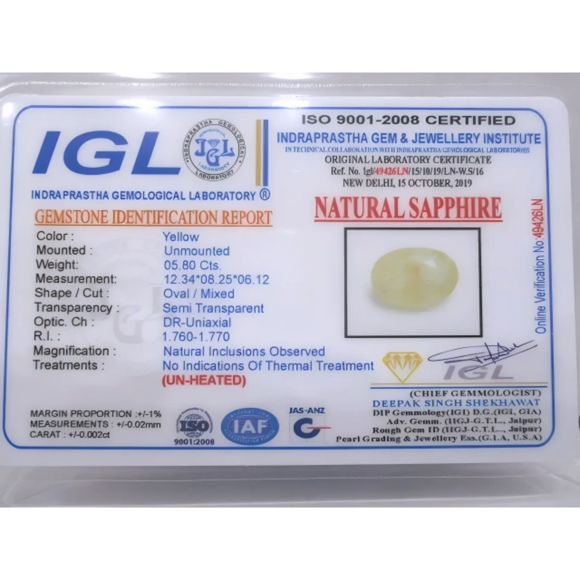 Natural Certified Pukhraj Stone – Premium Ceylon Yellow Sapphire 5.8ct