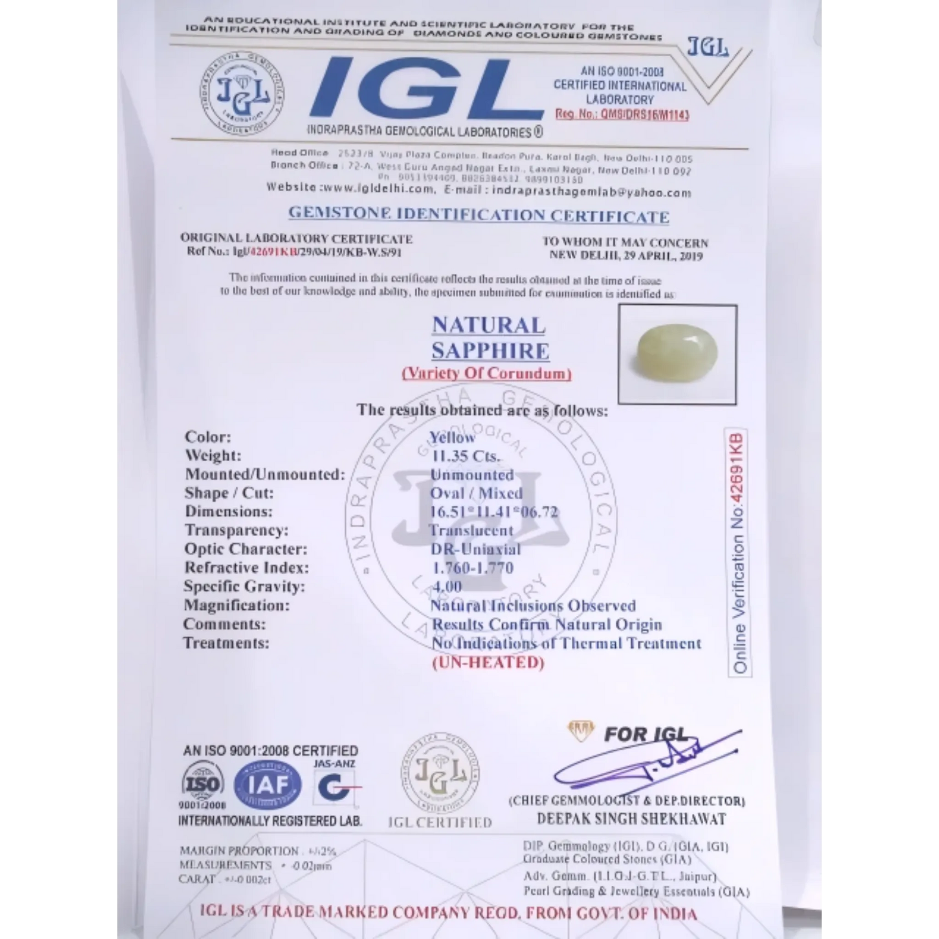 Premium Ceylon Pukhraj Stone – Natural Yellow Sapphire, Jyotish Certified 11.35ct