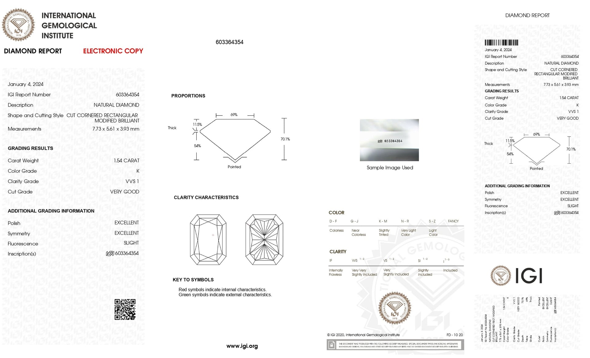 1.54ct Radiant Brilliant Cut VVS1 Clarity K Color Natural Diamond