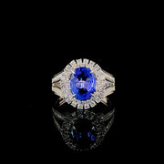 1.83ct Tanzanite Stone and 0.855ct Lab-Grown Diamond Oval Ring in 14K White Gold