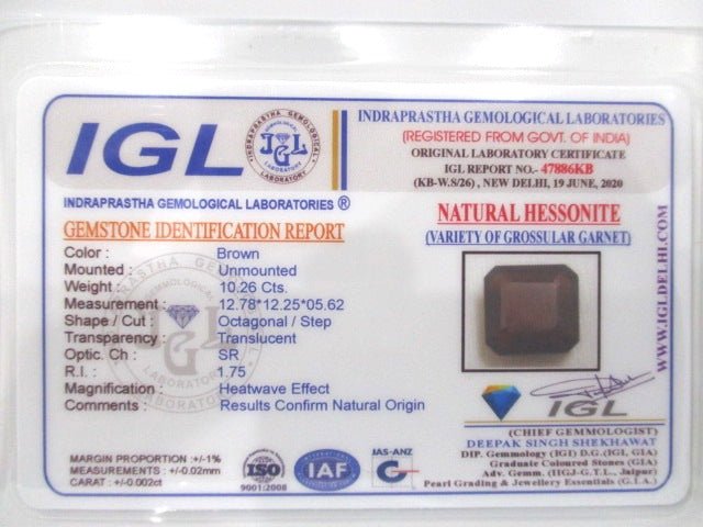 10.26 Carat 11.29 Ratti IGL Certified Natural Ceylon (Sri Lanka) octagonal shape Hessonite (Gomed) Gemstone