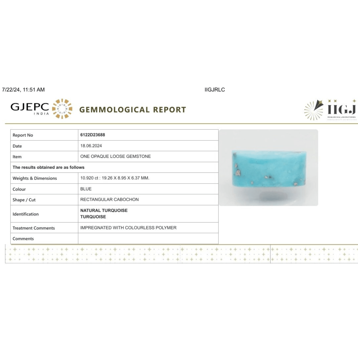 10.92 carat 12.01 ratti IGI-GTL certified AAA+ Quality Blue with golden Bisbee rectangular Turquoise (Firoza) Stone