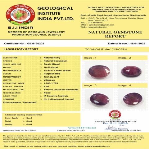 10 Carat 11 Ratti Natural GII Certified Mozambique Oval shape purplish-red Ruby Gemstone