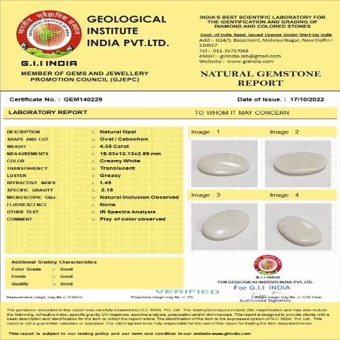 10 carat 11 ratti natural GII certified Australian Cushion shape opal stone