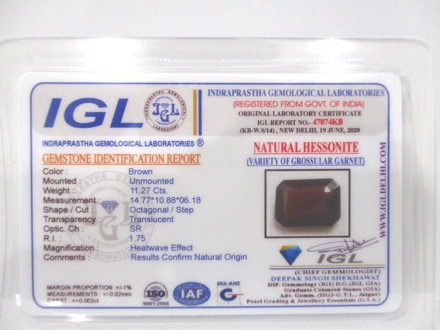 11.27 Carat (12.4 Ratti) Natural Ceylon Octagonal Hessonite (Gomed) Gemstone