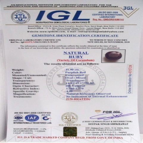 11.9 Carat 13.25 Ratti Natural IGL Certified Mozambique Oval shape Purplish-red Ruby Gemstone