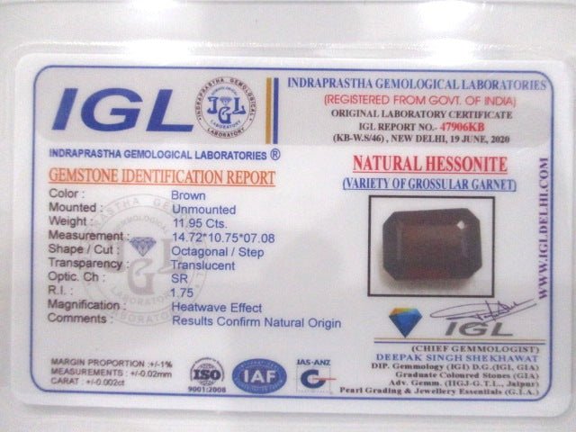 11.95 Carat (13.25 Ratti) Natural Ceylon Octagonal Hessonite (Gomed) Gemstone