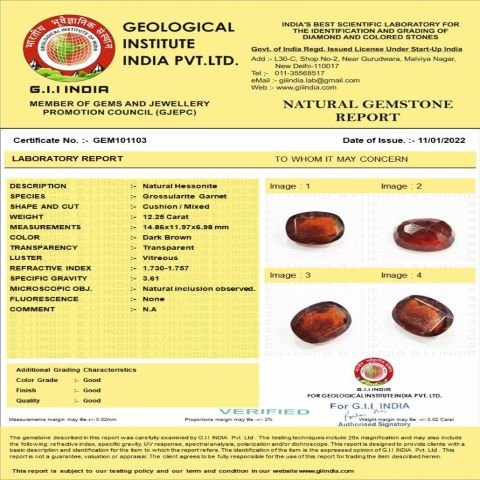 12.25 Carat 13.48 Ratti IGL Certified Natural African Hessonite (Gomed) Gemstone