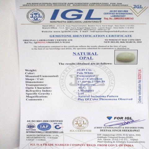 12.89 carat 14.25 ratti natural IGL certified Australian Oval shape opal stone