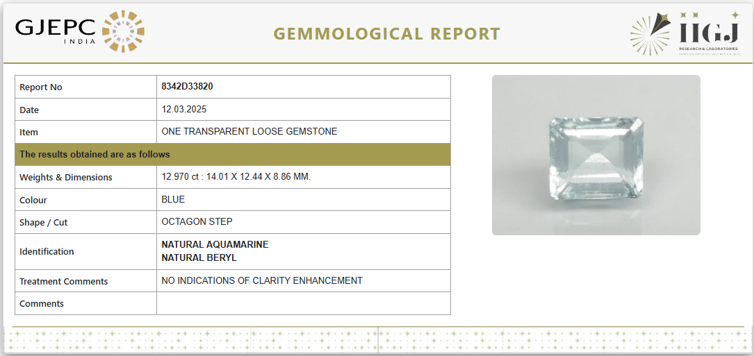 Natural Blue Aquamarine Stone – 12.97 Carat Certified Octagon Gem from Brazil