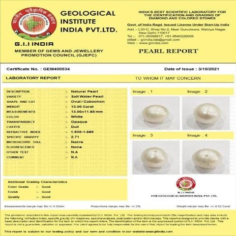 13 carat 14.3 Ratti Gii India certified south sea pearl