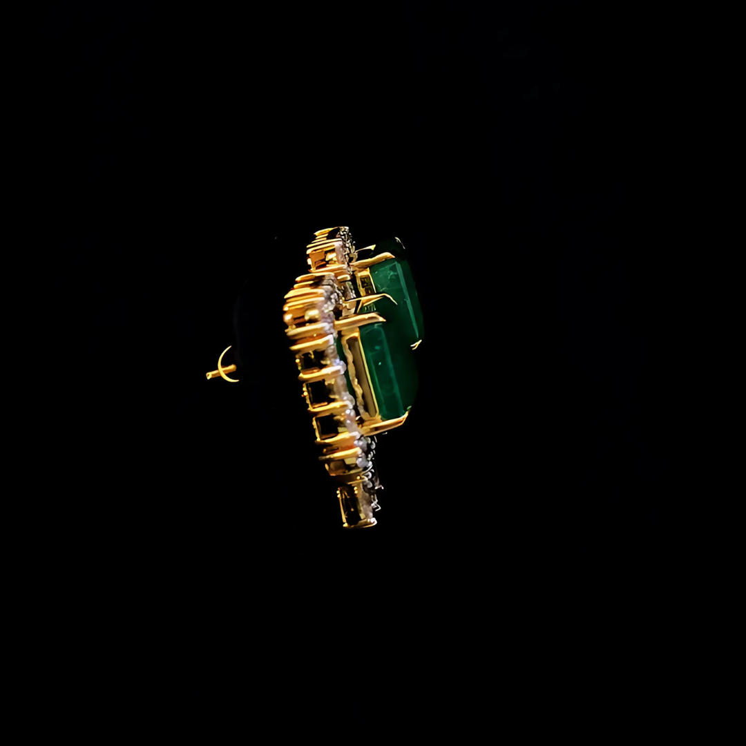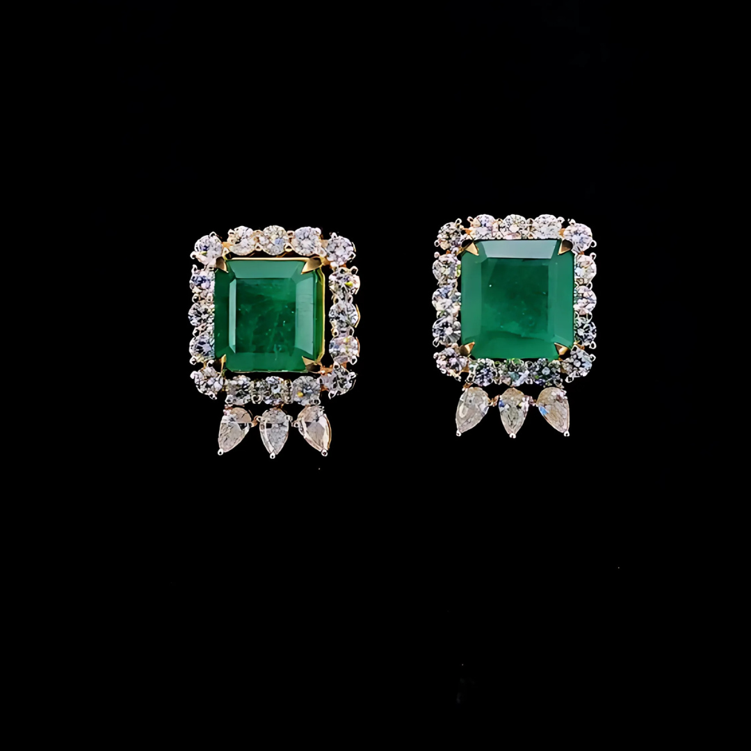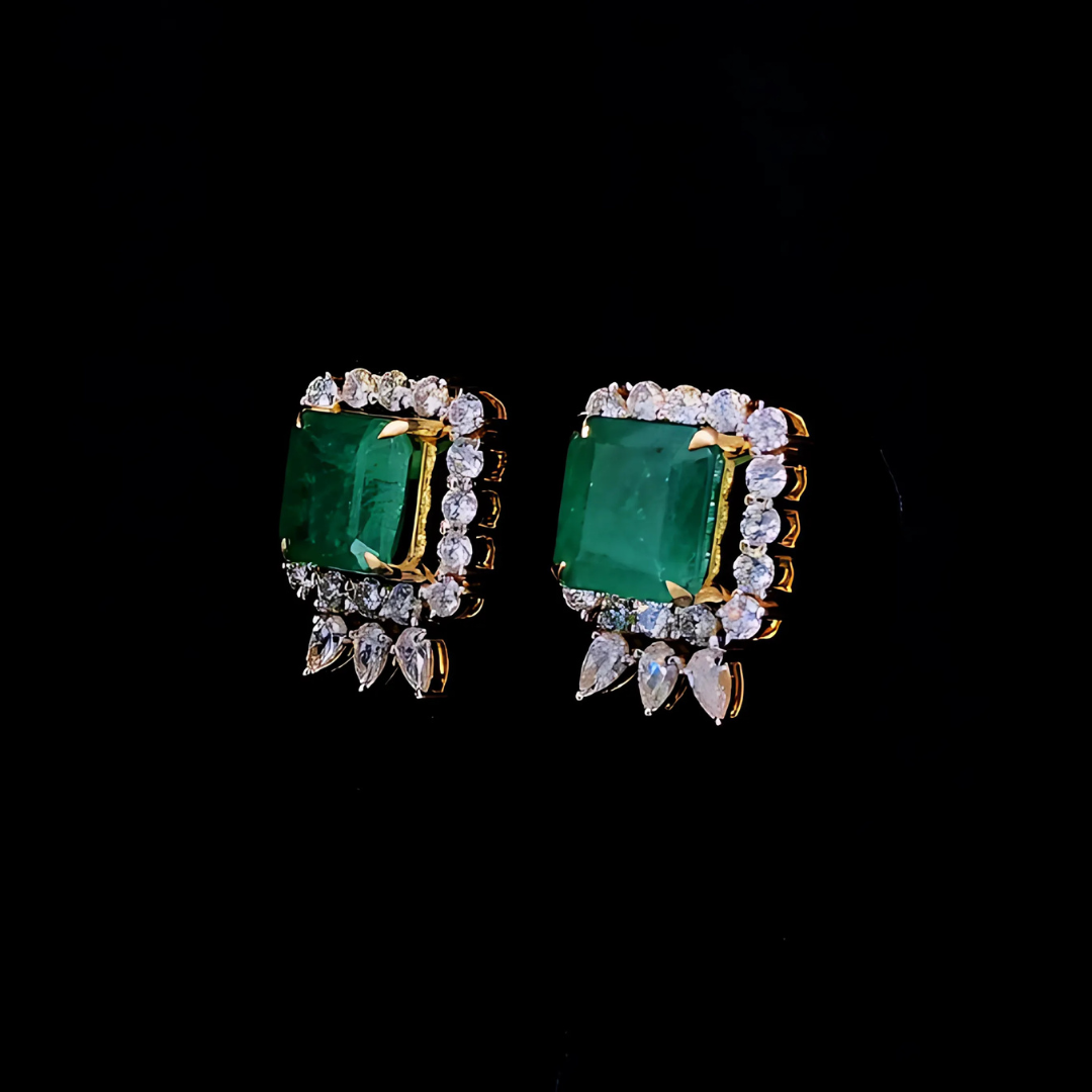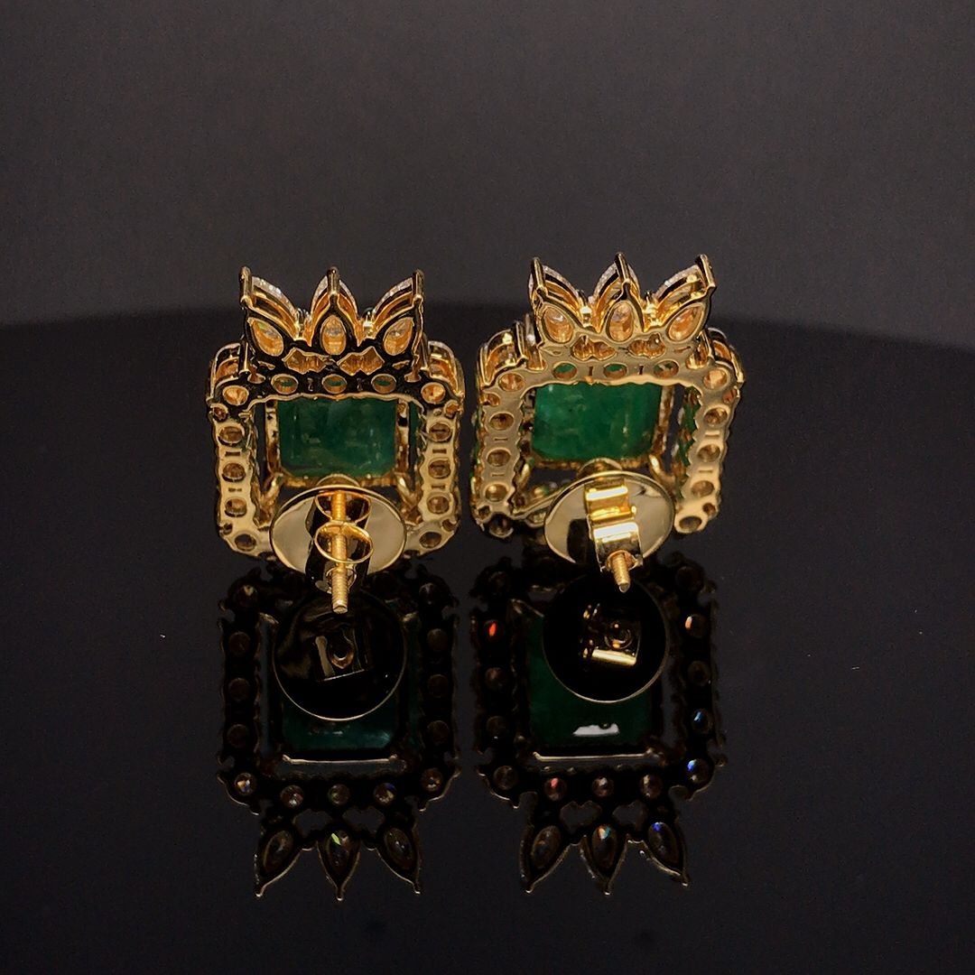 Elegance Redefined: 14.99ct Emerald & 4.25ct Lab-Grown Diamond Stud Earrings 18k Yellow Gold