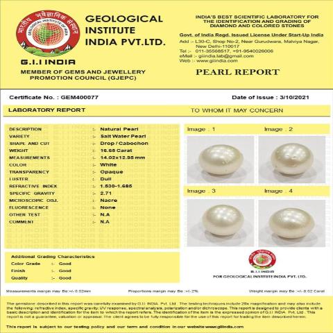 16.65 Carat 18.32 Ratti GII Certified Natural Australian Pearl Gemstone