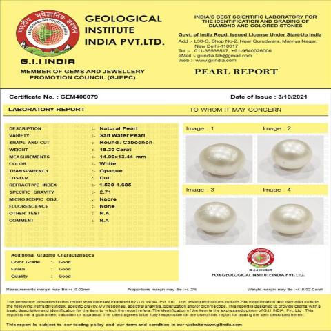 18.3 Carat 20.25 Ratti GII Certified Natural Australian Pearl Gemstone