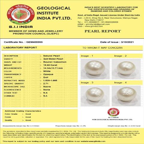 19.6 Carat 21.56 Ratti GII Certified Natural Australian Pearl Gemstone
