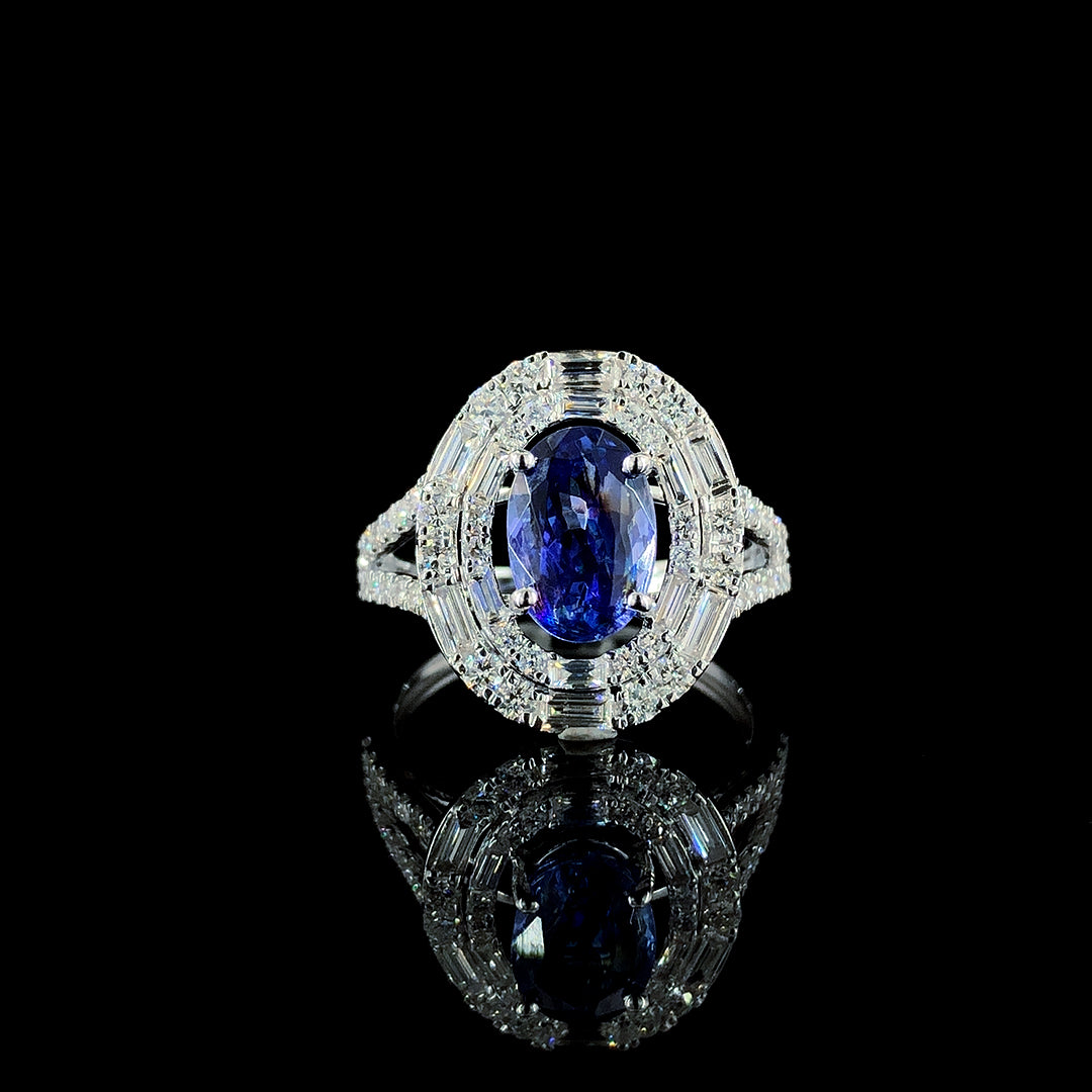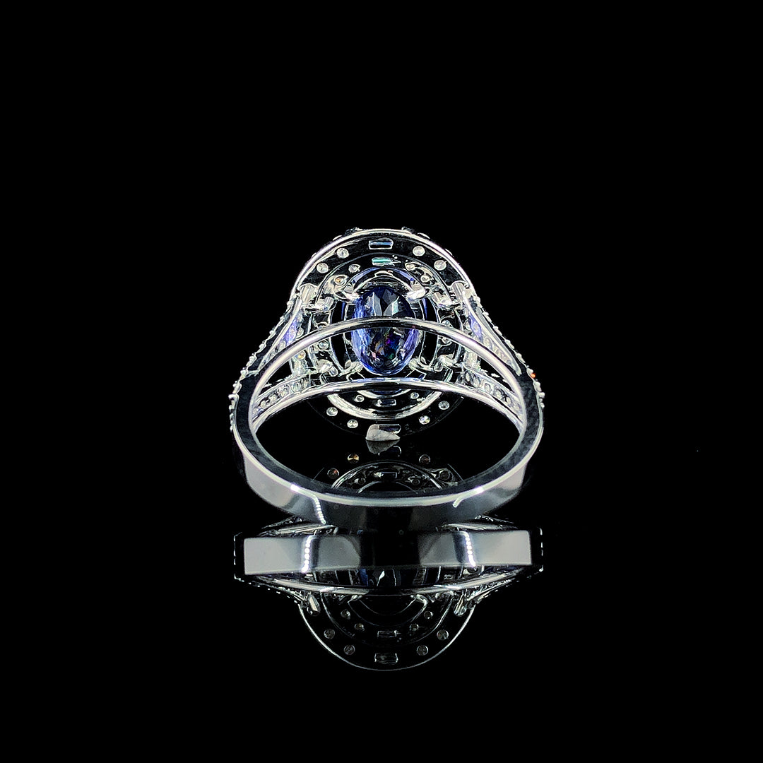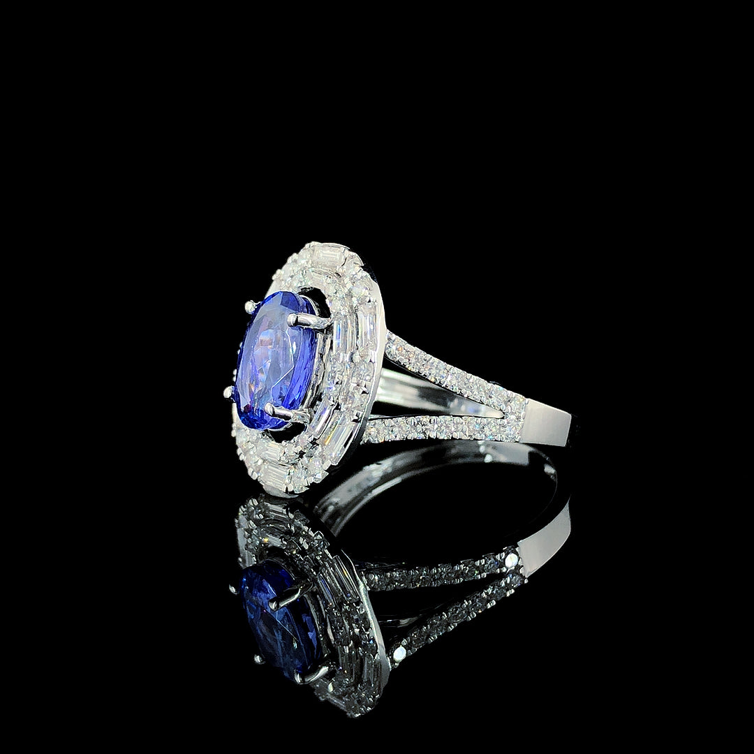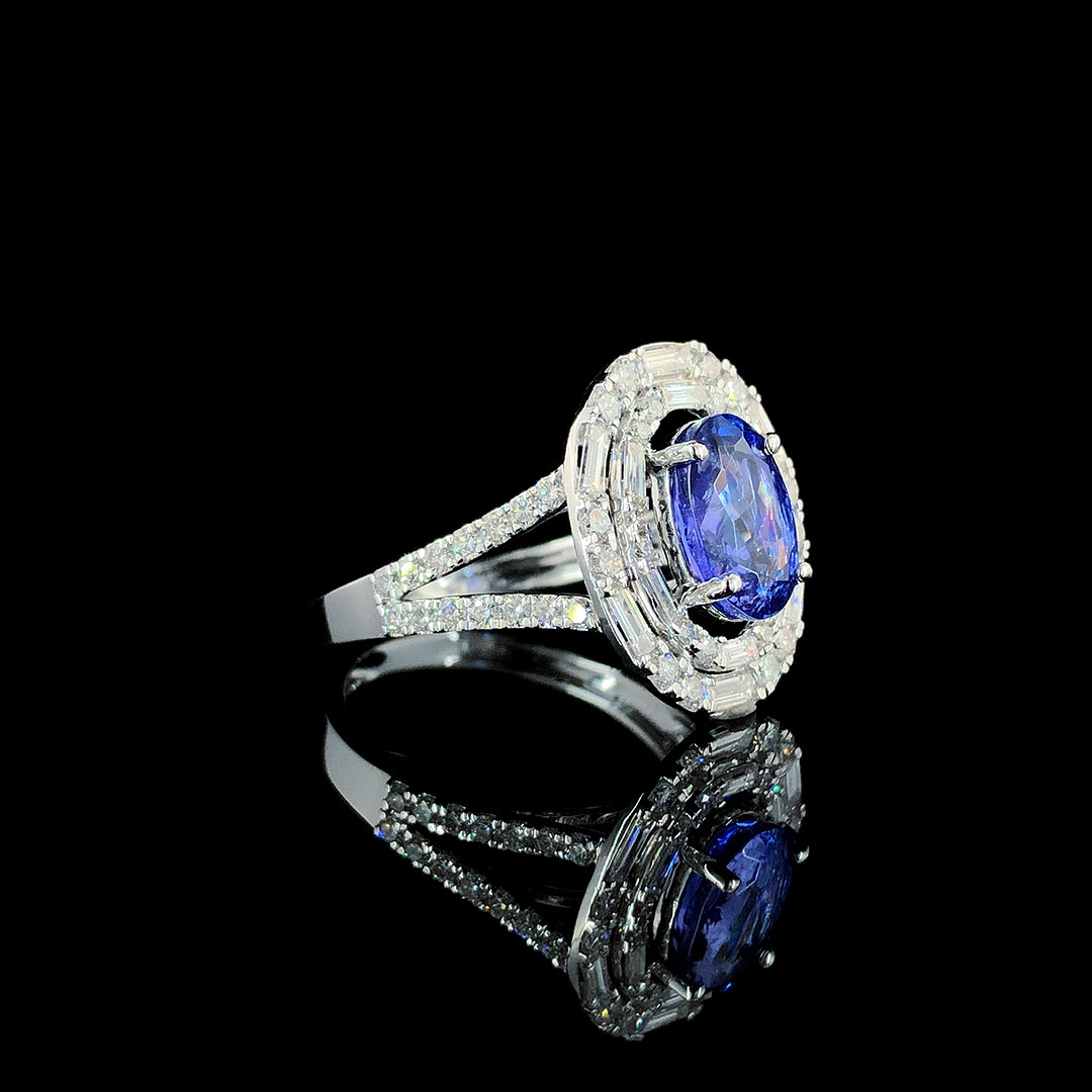 2.10ct Tanzanite Stone And 0.98ct Lab-Grown Diamond Oval Ring In 14k White Gold