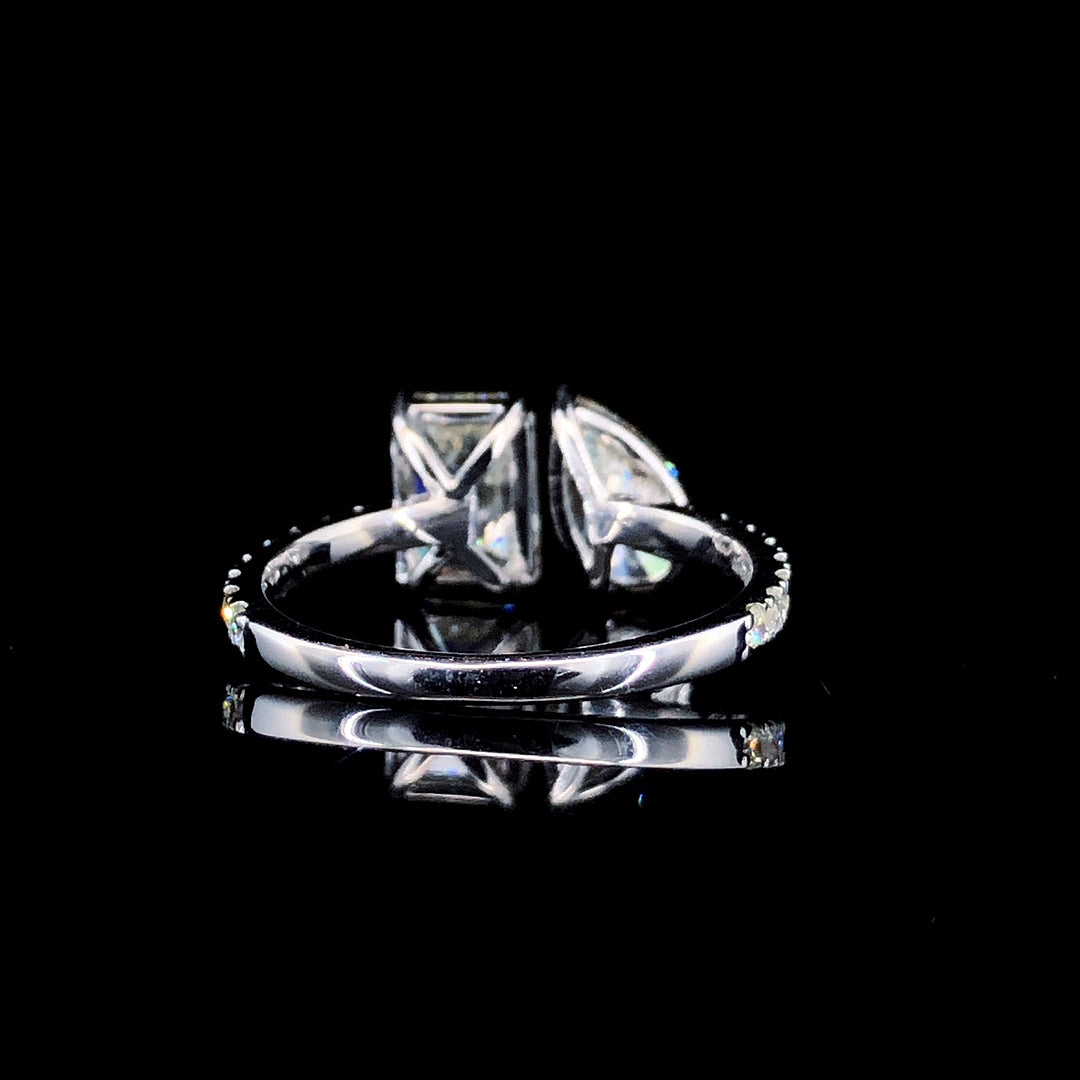 3.14ct Pear & Emerald Shape Natural Diamond Ring In 14k White Gold