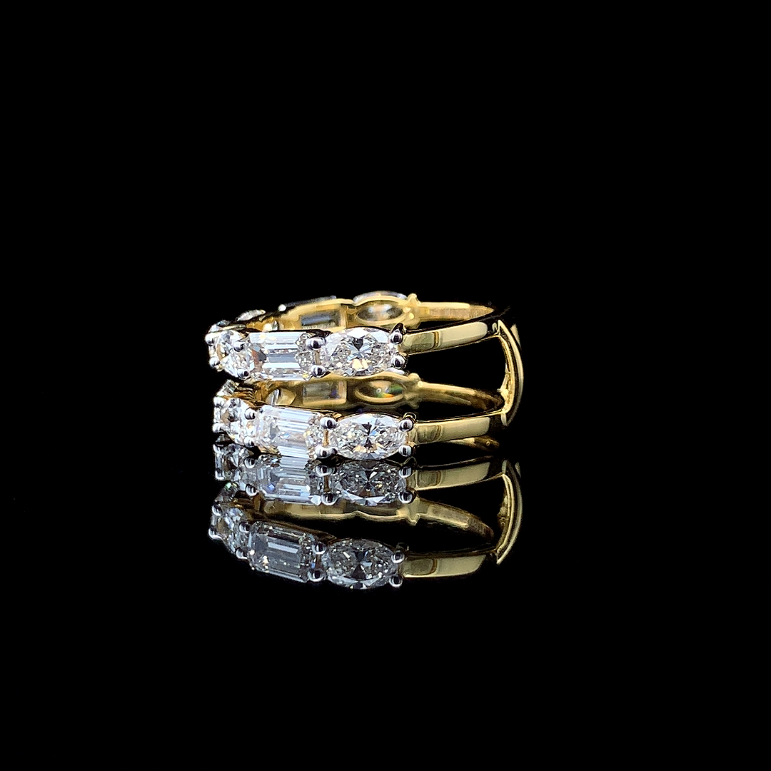 3.42ct Lab-Grown Diamond Oval & Emerald Shape Band In 14k Yellow Gold