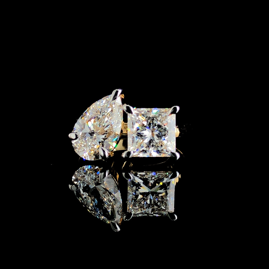 3.42ct Lab-Grown Diamond Princess Pear Ring in 14K Yellow Gold