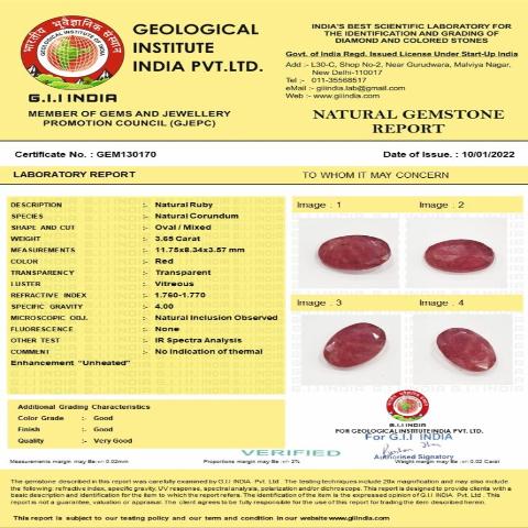 3.65 Carat 4.02 Ratti GII certified Natural Mozambique Oval shape red Ruby Gemstone